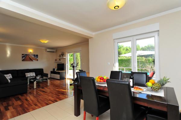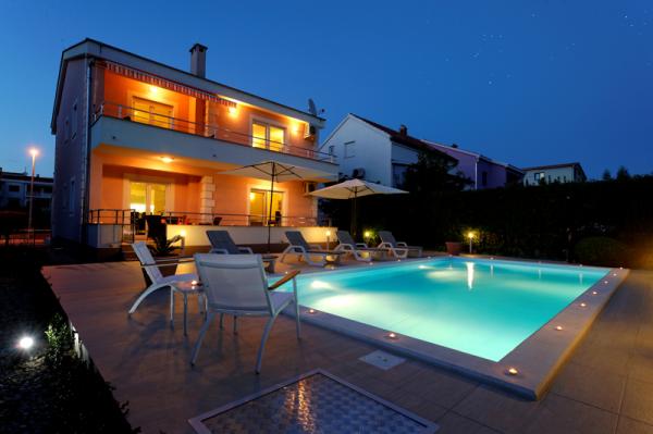 Pokud chcete strávit nezapomenutelnou dovolenou pak Zadar, jako cíl různorodého obsahu a bytu ve Villa ViGo je tou pravou volbou. Vila se nachází na okraji města dostatečně daleko od hluku města, přesto dostatečně blízko veškeré občanské vybavenosti. Prostorný luxusní byt v přízemí vily (93m2), s krytým balkonem, terasou obklopenou zelení, vám poskytne kompletní intimitu koupání, slunění a všeobecného využití celé zahrady. Na podlaze jsou dva majitelé, kteří vám rádi pomohou, pokud a kdy budete chtít, a jsou také připraveni opustit Villu na požádání, které bude uvedeno v době rezervace. Apartmán se skládá ze dvou ložnic s manželskou postelí (jedna má uzavřenou chatu), plně vybavené kuchyně s jídelním koutem a prostorného obývacího pokoje s terasou s výhledem na bazén. Rohový rohový set lze použít jako jednolůžko nebo rozkládací postel pro dvě osoby. Kuchyň je vybavena všemi potřebnými pomůckami; myčka, mikrovlnná trouba, kávovar, ohřívač vody, mixer, toustovač, stejně jako myčky nádobí. V koupelně je vana, pračka a sušička prádla, stejně jako hygienické potřeby. Hosté jsou k dispozici zdarma; 2 parkovací místa, WiFi, satelitní TV s plochou obrazovkou, klimatizace, gril, posilovací zařízení, stolní tenis. Villa ViGo nabízí kompletní potěšení, přijďte se podívat.