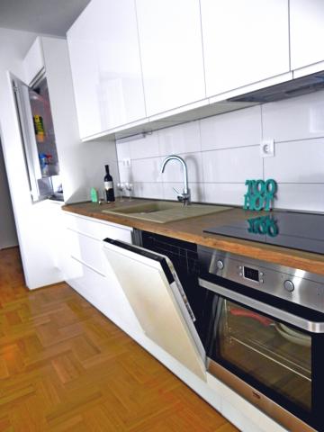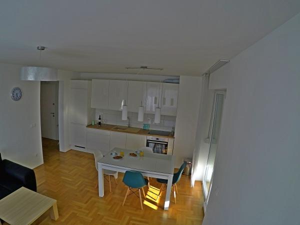 Nově postavený byt v budově se nachází v centru města, ve vzdálenosti lidové náměstí, pouhých 10 minut pěšky. Blízko vzdálenosti 5min chůze najdete mnoho zařízení, jako jsou sportovní zařízení, obchody, slot pro klub, bary a tak dále. V budově se nachází dvě ložnice, kuchyň, obývací pokoj, koupelna a balkon s výhledem na moře. Byt se nachází v 5. patře a jižní orientace, zatímco apartmány jsou parkovací stání v podzemní garáži.