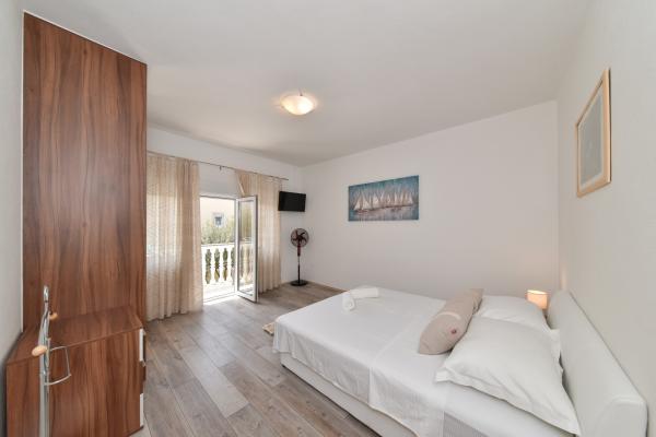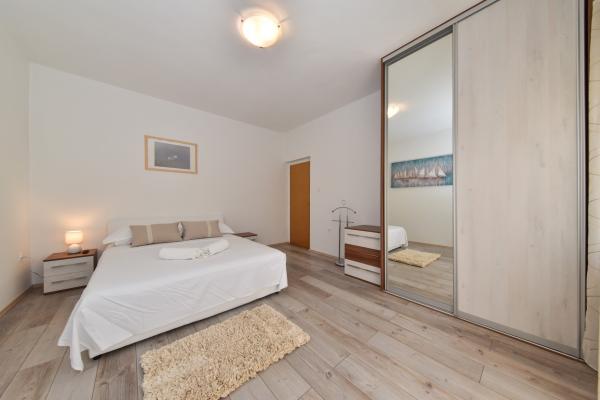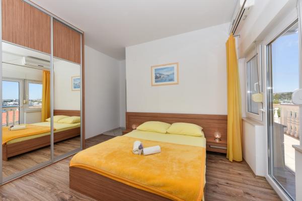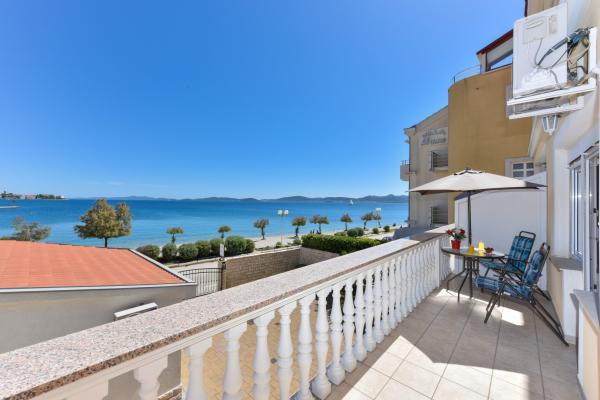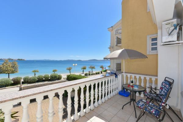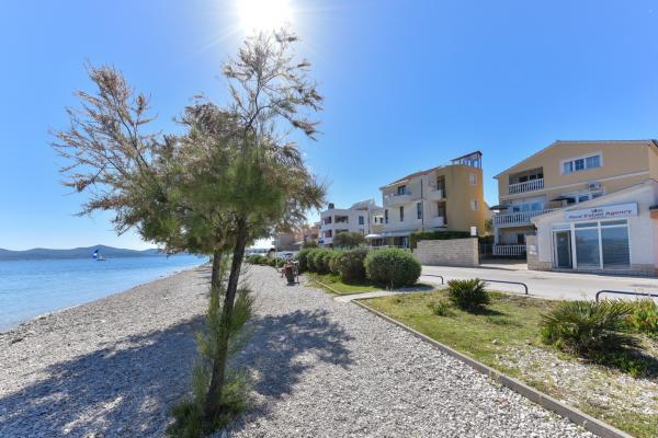 Bezprostředně na pláži jsou dva apartmány v rodinném domě v oblasti Zadar Puntamika, přímo u moře, v přední části pláže. Puntamika je součástí Zadaru je ideálním místem pro klidnou a odpočinkovou dovolenou, protože se nachází v klidné části města, přímo na pláži. Každý apartmán má rozlohu 30 m2 terasa 5 m2, který se nachází v prvním patře. Oba apartmány mají nádherný výhled na město Zadar, poloostrově, moře a Ugljan. Podél pláže je promenáda podél níž jsou umístěny všechny důležité vybavení: obchody, restaurace, bary, lékárna, banka a autobusové zastávky. Parkování je v oploceném prostoru před domem. Každý byt může ubytovat 2 osoby.