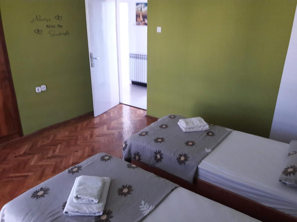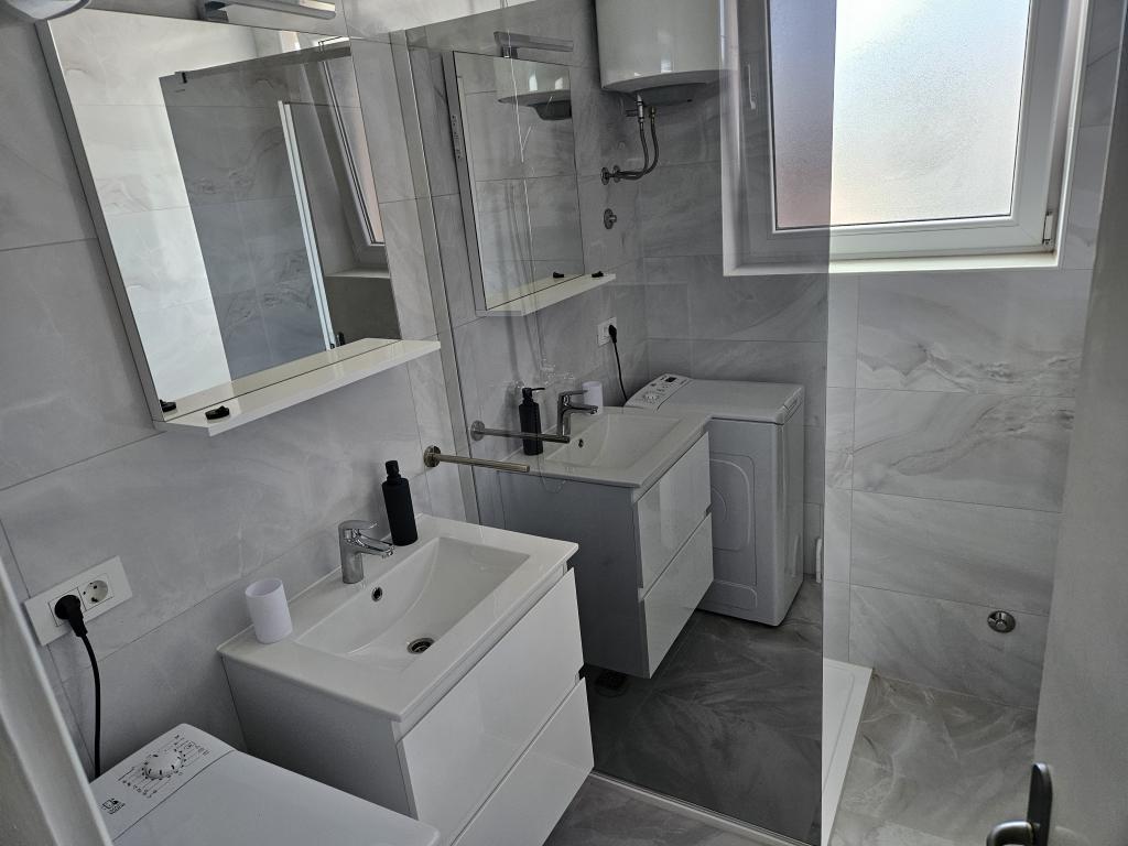 Apartmány se nacházejí v klidné oblasti, v řadě rodinných domů, první řada domů u hlavní silnice, která vede k moři, malý přístav, pouhých 70 metrů od moře. Nemovitost se nachází 2,5 km centrum starého města, 25 minut chůze podél moře do starého města nebo 5 minut chůze na oficiální pláž.