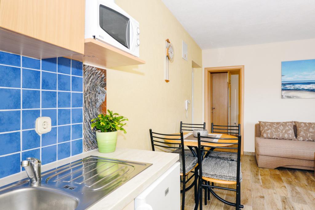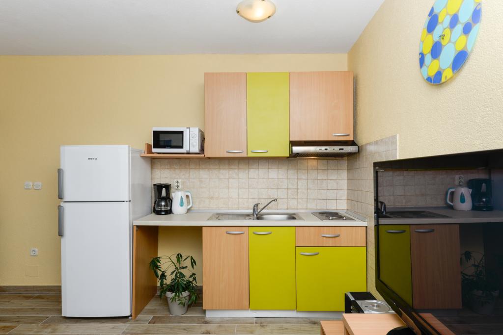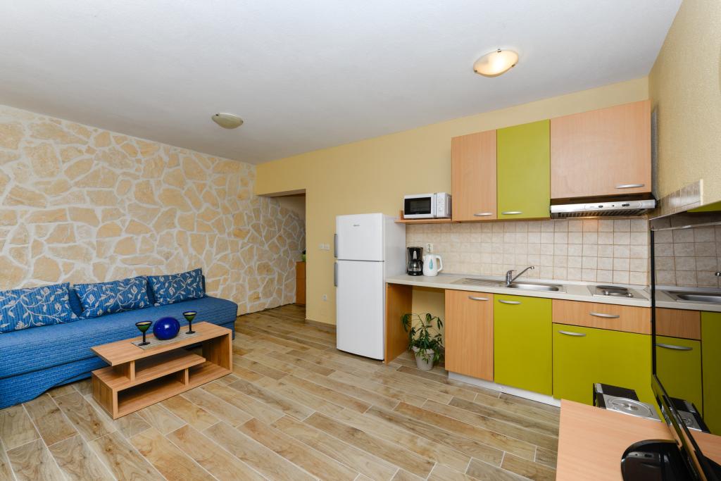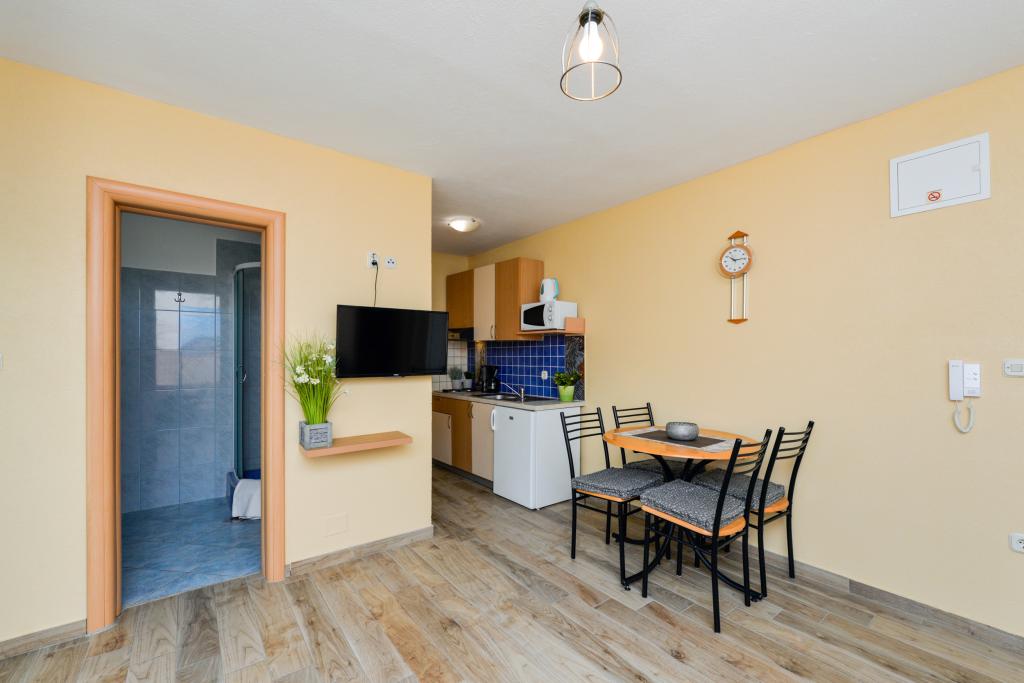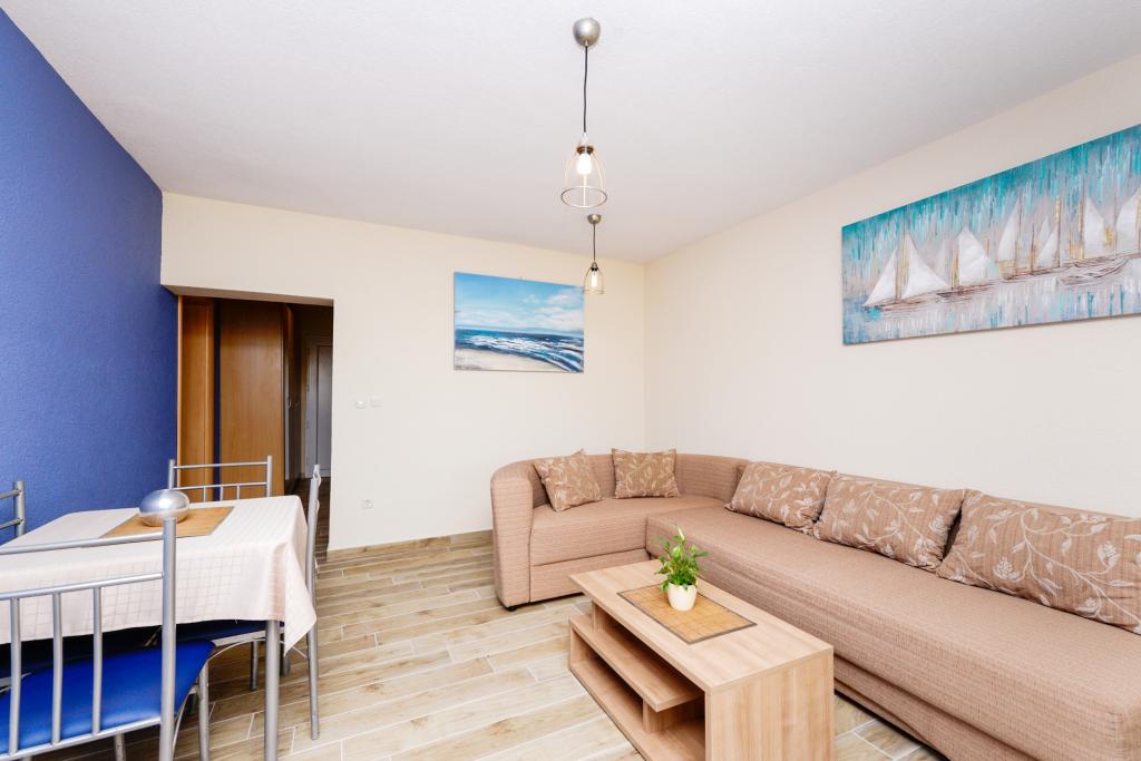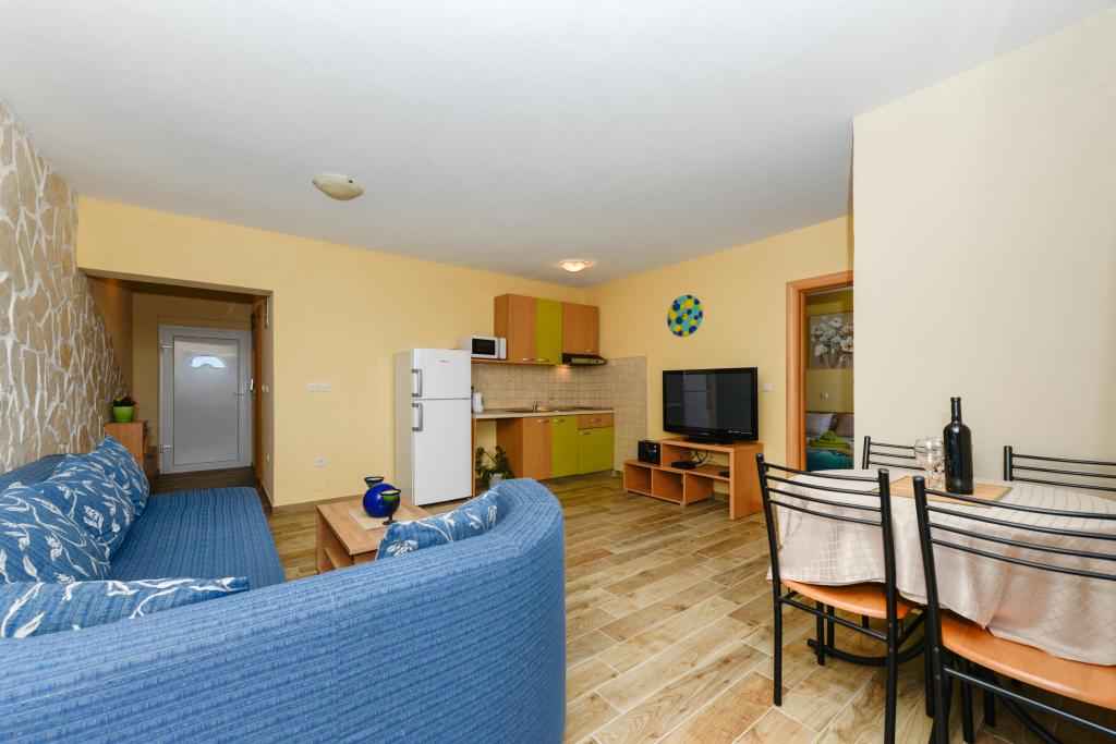 Apartmány se nacházejí 50 m od moře mezi dvěma plážemi Uskok a Marex. Vedle apartmánu se nachází přímořská promenáda, která vede na obě pláže, na které dojdete za 10 minut. Na každé pláži je kavárna a dětský park. Ve starém městě můžete počítat na břehu nebo na lodi. Pěšky to máte 12 minut a loď vám přiveze 1 euro na osobu. Všechny výlety lodí na Kornati vyplouvají z přístavu u východu pod apartmánem, který je 50 m od apartmánu (jednodenní výlety do národního parku Kornati). V blízkosti apartmánu jsou tenisové kurty (100m) a restaurace, Hungry Eyes, Rafaelo, Lungo Mare, Mamma Mia ... (100-800m). Obchod, potraviny, pekárna, lékárna a řeznictví jsou 400 m od bytu (5 minut pěšky). Pro více informací se můžete podívat do schránky a pozdravit