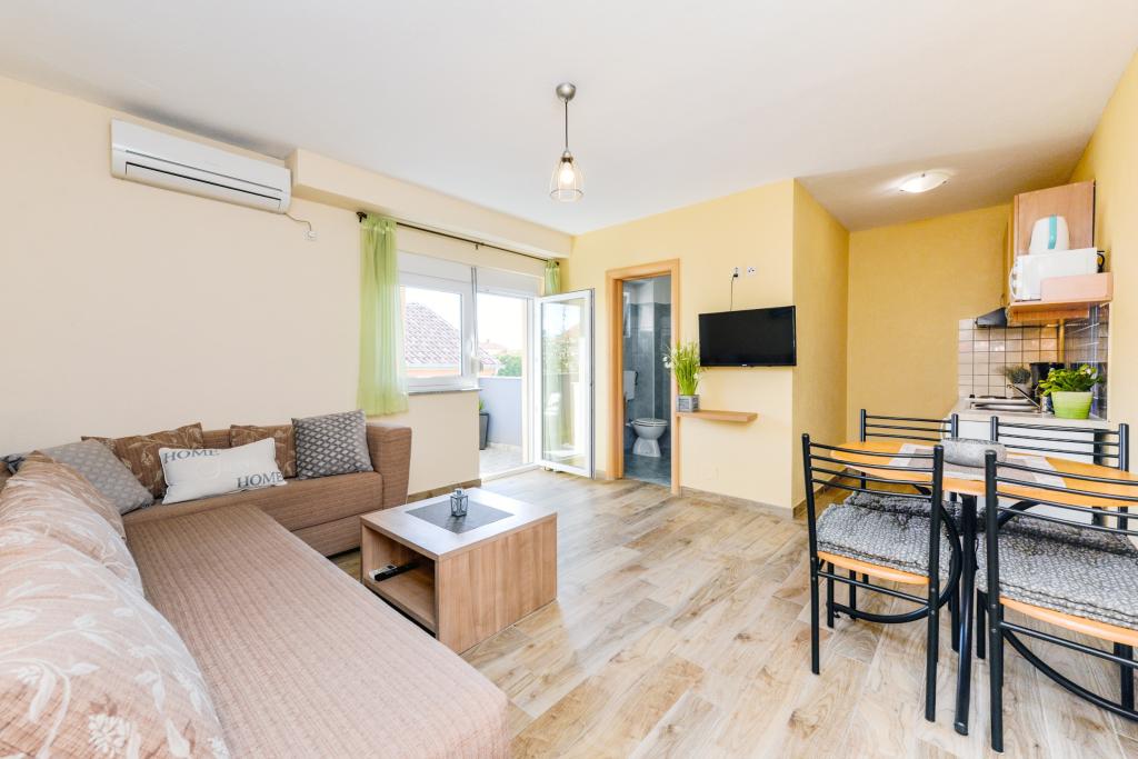Naše apartmány se nacházejí 50 m od moře mezi dvěma plážemi: Vedle apartmánu je promenáda u moře, která vede na obě pláže, na které to máte 8 minut pěšky. Na každé pláži je kavárna a park pro děti Zadar Do starého města se dostanete pěšky podél pobřeží nebo lodí, která je vzdálená 12 minut chůze, a loď vás odveze za 1 euro na osobu. Všechny výlety lodí na Kornati jsou z přístavu před apartmánem, který je 50 m od apartmánu (jednodenní výlety do národního parku Kornati). V blízkosti apartmánu jsou tenisové kurty (100m) a restaurace, Hungry Eyes, Rafaelo, Lungo Mare, Mamma Mia ... (100-800m). Novinový obchod, obchod, pekárna, lékárna a řeznictví se nachází 400m od bytu (5min chůze). Pro více informací můžete kontaktovat inbox, ahoj :