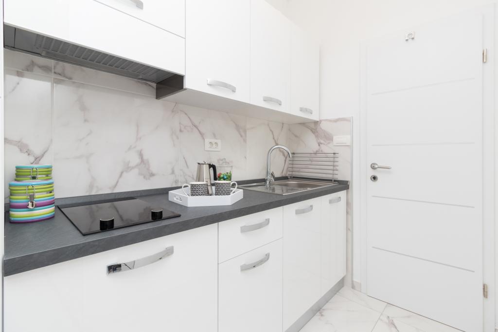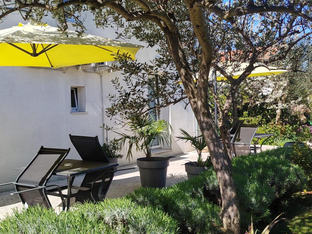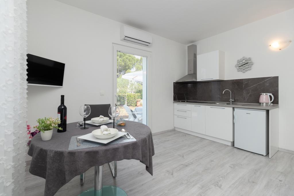 Moderně vybavené apartmány se nacházejí v klidném prostředí s upravenou zahradou, ideální pro relaxaci a trávení času venku. Objekt nabízí perfektní kombinaci pohodlí a funkčnosti a každý apartmán byl pečlivě zařízen, aby hostům zajistil příjemný pobyt. Poloha je mimořádně praktická, vlakové nádraží je vzdálené pouhých 10 minut chůze a letiště 15 minut jízdy autem, což umožňuje snadný příjezd a odjezd. Pokud přijíždíte autem, je zde možnost bezpečného parkování v areálu objektu. Veškeré potřebné vybavení, jako jsou obchody, restaurace a kavárny, se nachází v blízkosti a oblázková pláž je vzdálená pouhých 7 minut chůze.