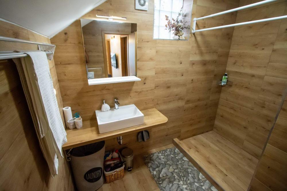 Zde u Hobbita se budete cítit od samého začátku jako ve vatičce. Okamžitě zapomenete na několikahodinovou cestu a okouzlí vás esprit a voňavá atmosféra nového, kamenného domu s venkovními žaluziemi, rozkvetlými květinami, útulným "sklípkem" s krásnými fotografiemi, které Vás vrátí do dávných dob. Zde můžete relaxovat s knihou či pogrilovat s rodinou. Vlídná, bystrá a nápomocná paní majitelka klidně zodpoví všechny vaše detailní dotazy, pomůže, poradí. Upřímně píšu, za takhle výborně, kvalitně, jsme se dlouho nikde nevyspali. Designové, hebké povlečení, několik polštářů, kvalitní matrace a klimatizace, zaručují vynikající spánkový komfort. Koupelna je velice prostorná, designová, ve sprše nechybí sprchové gely, velká i malá sprchová hlavice, dostatek měkkých ručníků i osušek. V kuchyni rovněž máte veškerý moderní komfort, myčku a pračku. Krásné židle, v optice starých, stylových. Věřte , že budete odjíždět s těžkým srdcem, a bude se Vám stýskat.