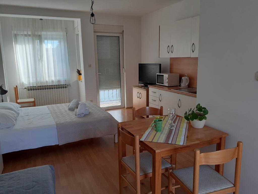Vřele doporučuji byt. Nejdůležitější, velmi čisté, prostorné studio pro 2 osoby, nové vybavení v kuchyni, vše, co potřebujete, účinná klimatizace. Svoboda, v blízkosti 4 pláží (na výběr), kavárny v okolí, trh Konzum, zastávka MHD 3 minuty od domu. Klidná čtvrť Borki. Doporučuji!