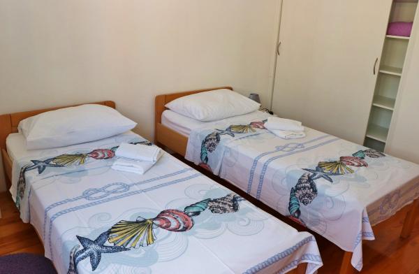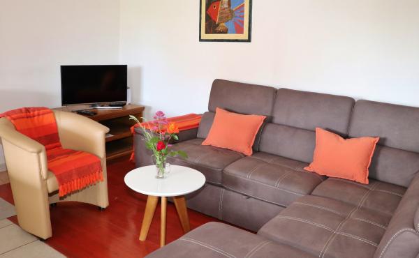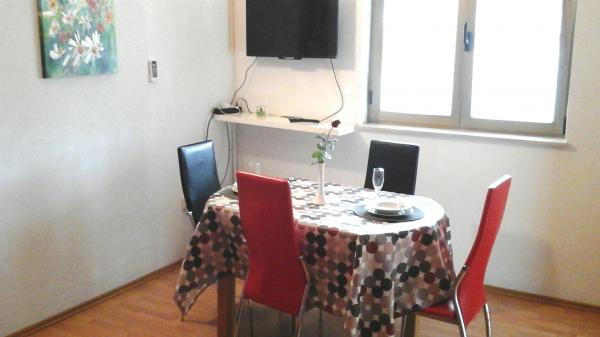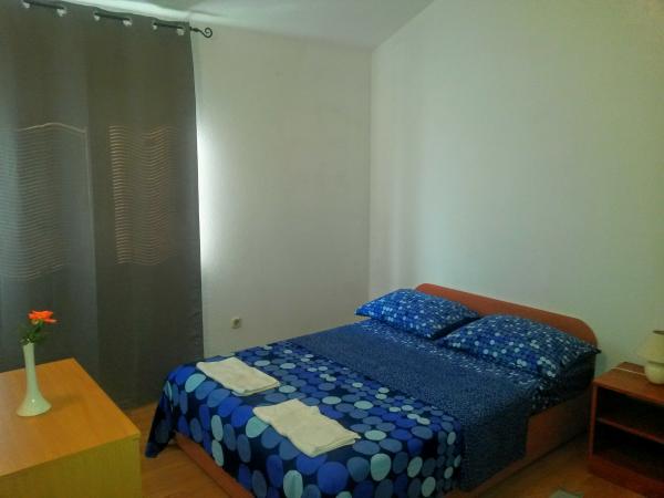 Byt se nachází v klidné části města a nachází se v soukromém domě s velkým parkovacím stáním, terasou a krásně upravenou zahradou. V bytě je 1 pokoj s manželskou postelí. pokoj s 2 samostatnými postelemi a pokoj s přistýlkou (futon typ) na podlaze, obývací pokoj s rozkládací pohovkou (160x1200 cm), kuchyňský kout, pračka, pračka, (Konzum a Billa a McDonald's jsou 5-10 min od apartmánu, kde je vlaková stanice (městská i dálková), do starého centra města, kde jste 20 minut jízdy autobusem a autobus č. 2 za 5 minut (cena letenka je 10 Kč) Kolovare městská pláž je 15 minut od apartmánu na krátkou procházku nebo 5 minut, pokud řídíte autem Pokud chcete odpočívat v tichu bez městského hluku to je to místo pro vás.
