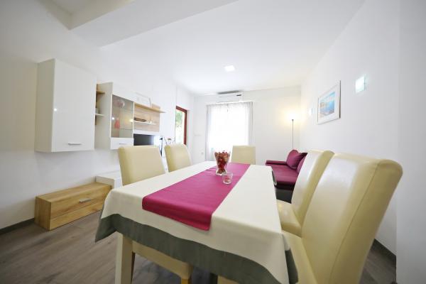 Strávili jsme velmi pěkný týden v bytě 4+2. Byt je velmi pěkný, moderní, čistý, velký a má vše, co potřebujete na dovolené. Vrcholem je terasa s altánem, posezením a fíkovníkem ve dvoře. Promenáda do města je dvě minuty chůze od domu. Parkování je před domem a je skvělé. Samir je velmi milý pronajímatel a je vždy k dispozici, pokud máte nějaké dotazy. Rádi bychom se vrátili.