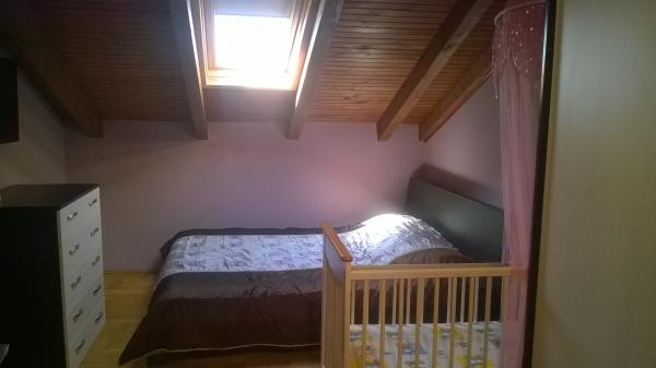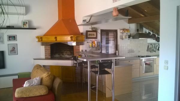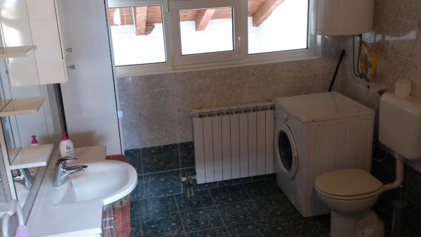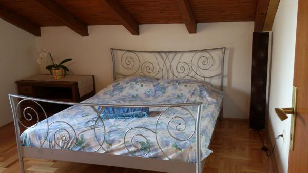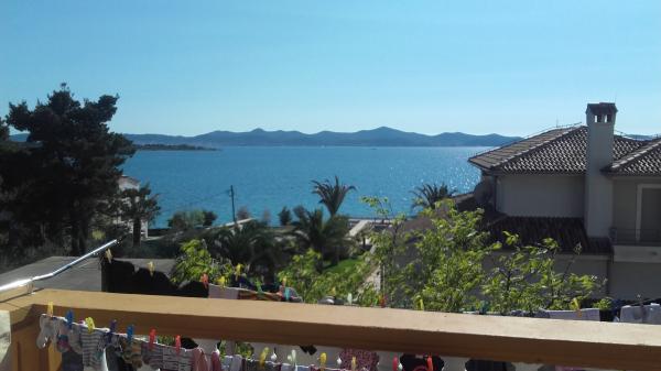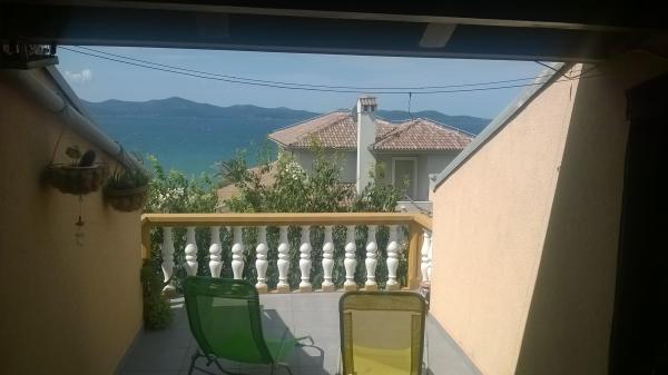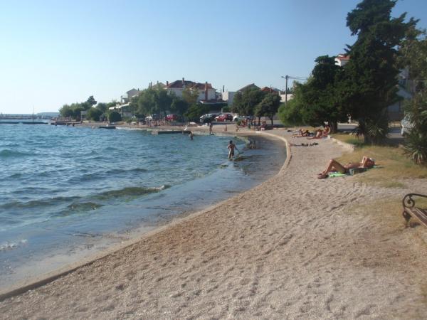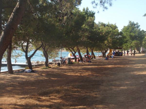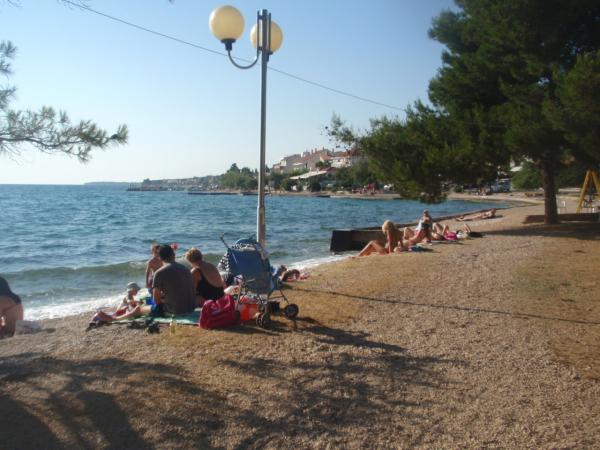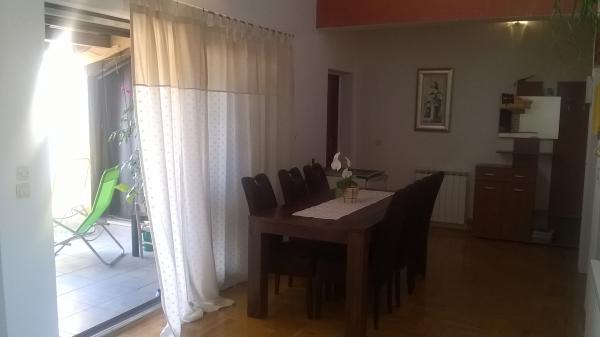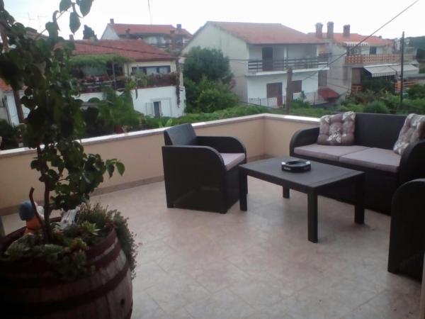 Byt se nachází v podkroví rodinného domu, 125 m2, cca 50 m od moře. To má tři ložnice, koupelna, velký obývací pokoj s krbem, klimatizace, plně vybavená kuchyň a dvě velké balkony. V případě potřeby, tam jsou také dětská postýlka a židlička pro dítě. Parkování pro auta na dvoře před apartmány, domácí mazlíčci jsou vítáni.