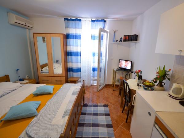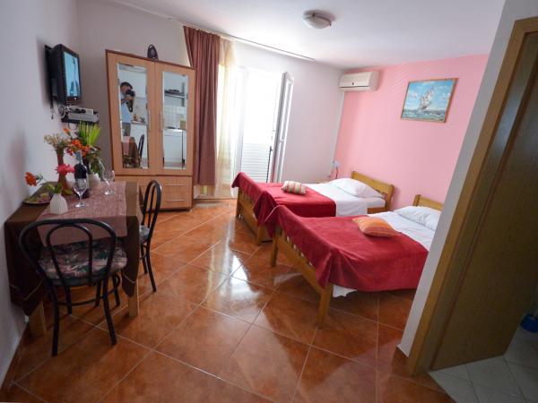 Villa Nada se nachází v elitní části města Zadar, má 4 krásné dvoulůžkové studia, vynikající apartmá, čtyřlůžkový pokoj se společným sociálním zařízením a třílůžkový pokoj s kuchyňským koutem a společnou koupelnou. Jsme se nachází 500 metrů od hlavního autobusového a vlakového nádraží, 1000 m od pláže Kolovare, 1500 m od historického centra a moře orgánů a pozdrav slunce. Velmi Jádro je bohatá na historické památky. Trajektového přístavu je 1500m a letiště sedmi (7), kilomettara ve které zajišťujeme dopravu za mnohem nižší ceny, než taxi. Pořádáme výlety do národních parků Krka Pplitvička Lakes, Kornati a Paklenica. Náš cenné personál se ujistěte, že si pobyt v naší vile je příjemné a kouzelné !!! VÍTEJTE !!! Přejeme Vám příjemný výlet a příjemný pobyt tam, kde BIL