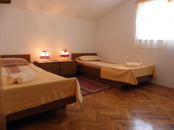 Apartmán s balkonem a výhledem na moře Digitální SAT-TV, volný přístup k internetu (WI-FI), parkoviště zdarma, klimatizace. Dům se nachází v turistické části Zadaru (Diklo), asi 200 m od moře, pláže, supermarketu, autobusového nádraží. Parkovací lístky pro naše hosty jsou zdarma a není nutná rezervace (12 parkovacích míst). Nabízíme Vám ubytování v komfortním apartmánu (4 1) ca. 85 m2, 2 ložnice, kuchyň, koupelna, obývací pokoj, digitální SAT-TV s přístupem na internet (WI-FI) a balkon s výhledem na moře. Nabízíme také pokoje s vanou. Pokoj pro 2 osoby s vanou cca. 25m2, lednice, digitální SAT-TV, Wi-Fi, klimatizace a posezení ve dvoře. Hostům je k dispozici společná kuchyň. Pokoj 2 1 pro 2-3 osoby s vanou, velikost ca. 55m2, lednice, satelitní TV, wi-fi, klimatizace a balkon. K dispozici je také společná kuchyň.