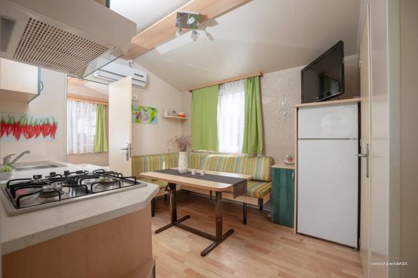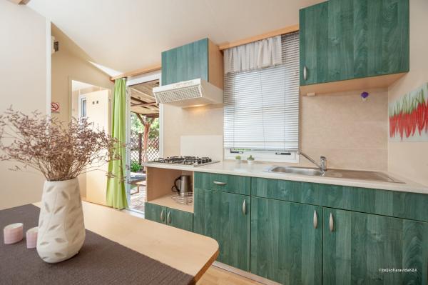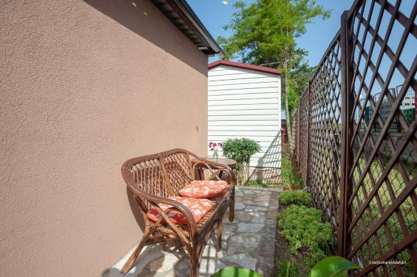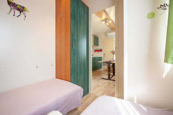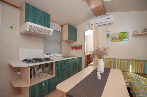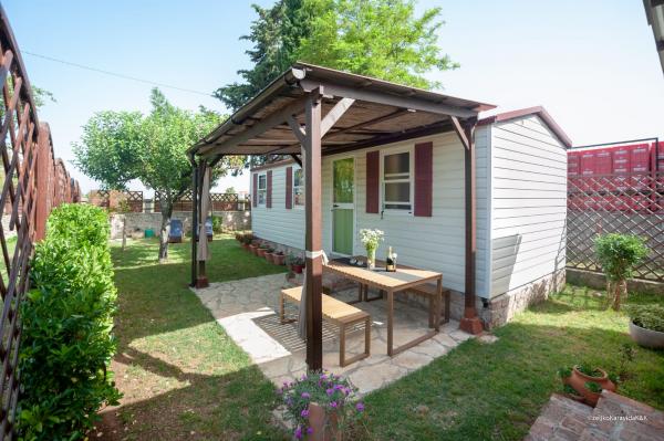 Mobilní dům je situován ve dvoře rodinného domu, v okrajové části města Zadar, v klidném prostředí. Přístup je z hlavní silnice Zadar-Razanac, jen pár minut od centra města a na nedaleké pláži města. Dům je obklopen dřevěné dekorativní panely s jakmile si uvědomil, intimity, a je také nežádoucí pohledy. Dům se nachází v malém sadu a krásný trávník na druhé straně vlastníků dvoře. Jako součást domu a na dvoře je gril, malý dřevěný domeček pro děti na hraní, solární sprcha, dřevěný nábytek na terase posezení, malá dřevěná lavice pro posezení u sklenky svého oblíbeného nápoje a knihu, a garáž pro auto, takže auto ne na slunci nebo dešti. Vzhledem k tomu, chaty obklopené ozdobným dřevěným plotem dítěti volnost v průběhu hry v dřevěné dětské dům a nádvoří domy a bezpečnost rodičů a klid, zatímco ve stejné době neexistuje nebezpečí zranění.