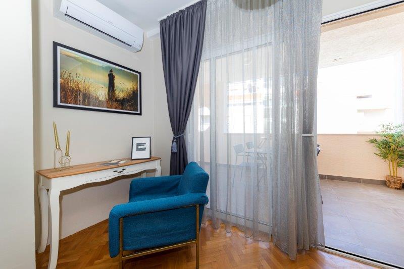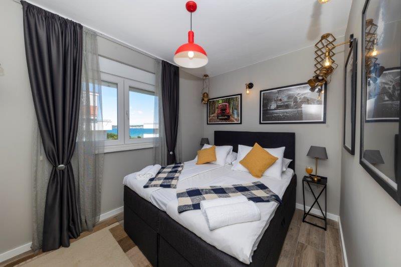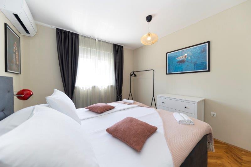 Byt je velmi čistý, prostorný, má velkou terasu a je vybaven naprosto vším, co potřebujete, také kuchyň je plně vybavená. V blízkosti jsou restaurace a supermarket. Pláž Borik je 10 minut (maximálně) chůze. Do starého města se snadno dostanete autobusem (nádraží je velmi blízko) nebo Uberem, vzdálenost do centra je asi 4 km. Všechno pro nás bylo skvělé a nemůžeme se dočkat, až se vrátíme.