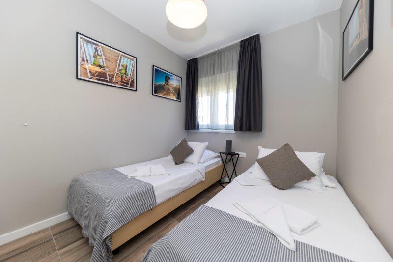 Byt je velmi velký. Velmi pohodlná postel s tvrdou matrací. Ne tak daleko od pláže, jen 2-3 minuty chůze. Písečná pláž Borik se nám nelíbila a zůstali jsme na nedaleké kamenité pláži (Plaža Borik) s využitím mola ke skoku do vody. Teplota vody byla perfektní.