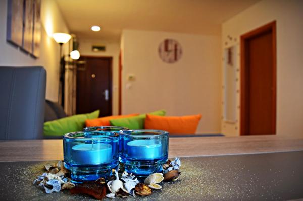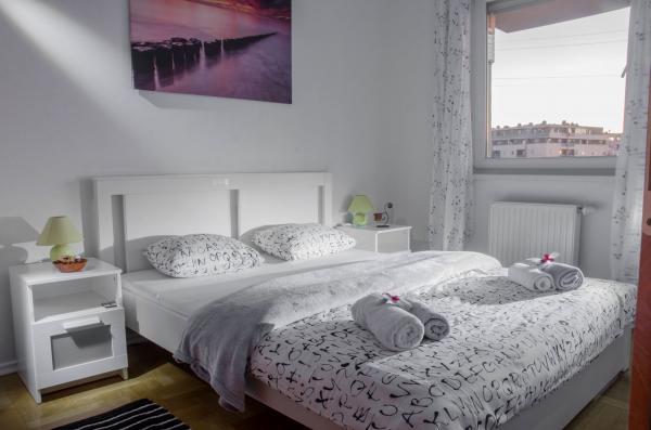 Moderně zařízený 4hvězdičkový apartmán s kapacitou až 6 osob, v blízkosti nákupního centra Arena a sportovní haly. Hosté mají k dispozici bezplatné parkoviště (možnost využít vlastní garáž nebo parkovací místo v nákupním centru) Skládá se z: 1) lobby, 2) obývací pokoj s rohovou opěrkou, 3) jídelní prostor, 4) kuchyně, 5) ložnice s manželskou postelí (rozměry 160x200 cm), 6) koupelny, 7) balkon. V bytě je k dispozici bezplatné Wi-Fi, klimatizace, ústřední topení, inteligentní televizní přijímač s internetem a 90 kanály, talíř a pečicí trouba, velká lednička s mrazákem, rychlovarná konvice a toustovač, plná kuchyňská a jídla, , vysoušeč vlasů, žehlička a žehlící prkno, trezor, ... K dispozici je možnost rozšíření kapacity (4) pro 2 další osoby s přistýlkou Byt se nachází v blízkosti obchodního domu s potravinami, kavárny, pekárny, pizzerie, kadeřnictví, pošty, kostely, bankomaty a nakonec nákupního centra