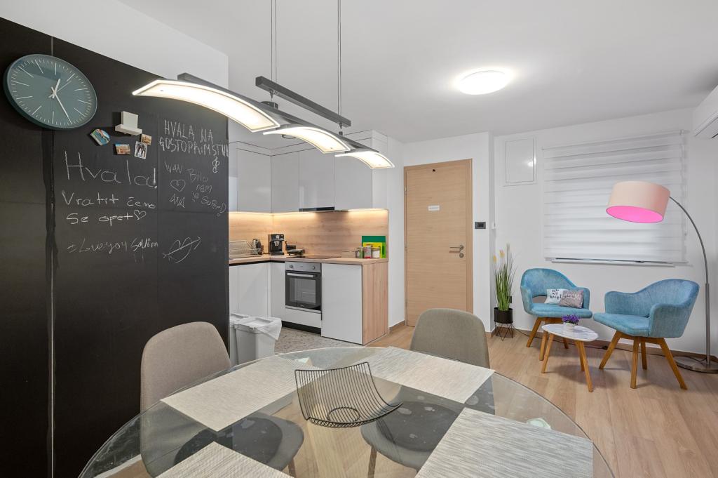 Přečtěte si více Ubytovací jednotkyRezervaci můžete provést zasláním zprávy na WhatsApp, Viber, e-mailem nebo zavoláním. Platba se provádí při příjezdu, zálohy nebereme. Dejte nám prosím vědět, pokud jsou vaše cestovní plány narušeny nebo pokud cestu zrušíte, abychom na vás nemuseli čekat. Časy check-in a check-out: Check-out: 08:30 Check-in: 15:00 Budete mít samostatný, velmi jednoduchý check-in a check-out: Den před příjezdem obdržíte informace a bezpečnostní PIN kód pro check-in prostřednictvím číselníku u vchodu do apartmánu.