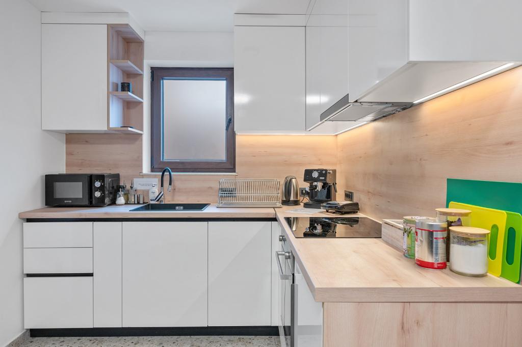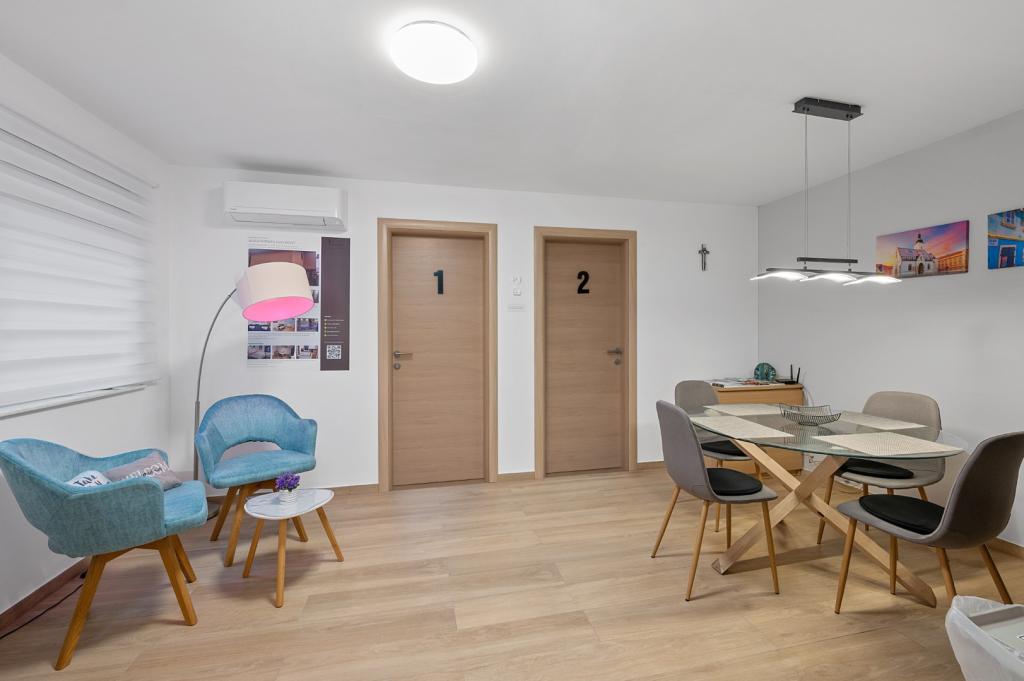 Tento moderní a útulný apartmán, nedávno zrekonstruovaný, je navržen s důrazem na pohodlí, takže je ideální jak pro pohodovou dovolenou, tak pro pracovní pobyty. Nachází se v domě v jedné z mála klidných ulic v centru města a nabízí kombinaci klidu a pohodlí. Upozornění: minimální délka pobytu jsou 2 noci – jedna noc prostě nestačí k tomu, abyste zažili vše, co apartmán nabízí! Byt se skládá ze 2 ložnic, plně vybavené kuchyně s jídelním koutem a koupelny s toaletou. I když máme domácí mazlíčky rádi, bohužel je zde nemůžeme ubytovat! Pozornost byla věnována každému detailu: pokoje mají pružinové postele (140×200 cm) s ergonomickými, pevnými matracemi pro kvalitní spánek, TV s WIFI, psací stůl, šatní skříň a klimatizaci. Kuchyně je vybavena vším, co byste mohli potřebovat, včetně myčky nádobí, mikrovlnné trouby, rychlovarné konvice a toustovače, se stálým přísunem čaje a kávy. V koupelně je sprchový kout, fén a pračka (u pobytů na 4 a více nocí).