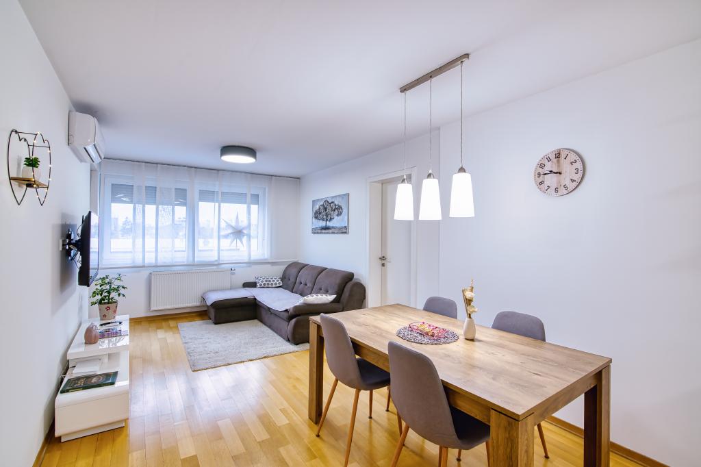 Odpočiňte si v tomto pohodlném a krásně zařízeném ubytování. Klidná lokalita, centrum města 3,2 km, ZOO Maksimir 900 m, centrum města jeden východ 2,7 km, koupaliště a atletická dráha Svetica 650 m, blízko tramvaj, autobus, vlak. Garážové stání pod kamerovým dohledem, obchody Interspar a Bipa se nacházejí v rezidenčním komplexu.