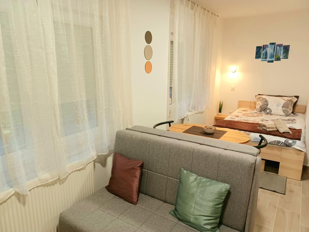 Zařízení se skládá ze 6 ubytovacích jednotek s kapacitou až 11 osob. Každá ubytovací jednotka má vlastní kuchyň a koupelnu. Apartmány se nacházejí v klidné obci, ve slepé ulici s pěším východem na hlavní silnici (50 m). Vynikající dopravní spojení, v blízkosti restaurací (300 m) a obchodů (100 m). Vzdálenost od centra města přibližně 20 minut autem, na kole nebo veřejnou dopravou. Vynikající poloha apartmánů pro hosty, kteří přijíždějí ze zdravotních důvodů díky blízkosti několika nemocnic a klinik.
