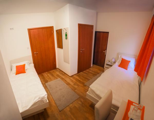 Pokoje v hotelu Lydia nabízí ubytování v pokojích s plným komfortem. Každý pokoj má samostatný vchod, vlastní koupelnu se sprchovým koutem a WC, v přízemí, která je pouze 3 zastávky tramvají (15 minut) od centrálního náměstí Ban Jelacic. Pokoje jsou vybaveny ložním prádlem, ručníky, toaletní potřeby, Wi-Fi, klimatizace, topení, TV s národními programy - vše v ceně. Je to zdarma a používat společnou kuchyň se všemi spotřebiči a nádobím. Nabízíme parkování ve dvoře, aby byly účtovány. Bohužel, domácí zvířata nejsou povolena. Kouření je zakázáno uvnitř budovy, na dvoře je povoleno. Tím, zastávky tramvaje je 3 min chůze, a tam je perfektní spojení se všemi částmi města, ve dne iv noci. Trh a tržní ryby jsou do 5 minut chůze, obchod a pekárna 50 metrů. V blízkosti jsou také skvělé národní, vegetariánská a rybí restaurace. Pošta, lékárna a stanice taxislužby jsou menší než 300 metrů.