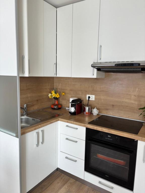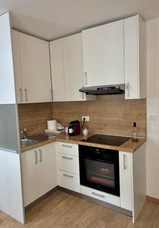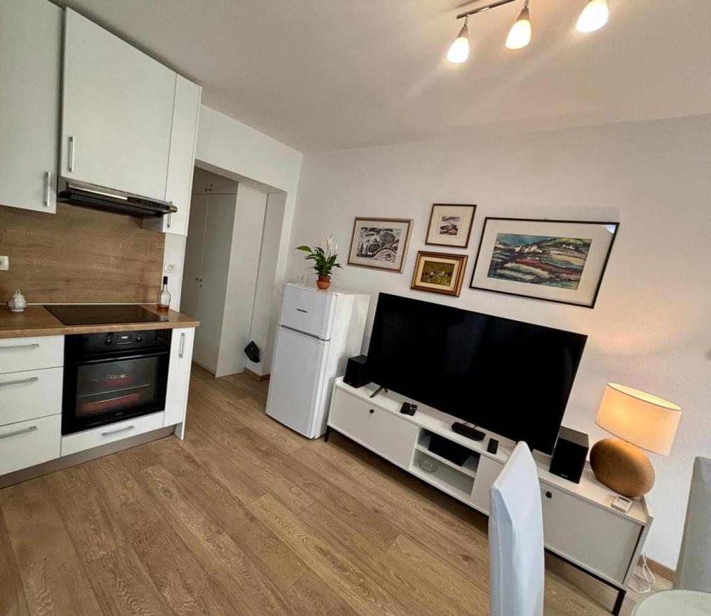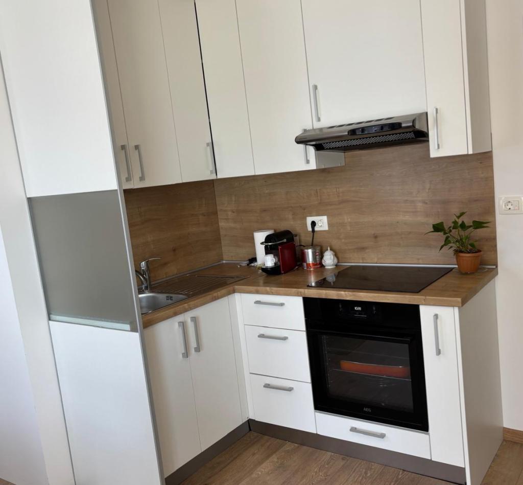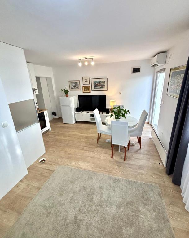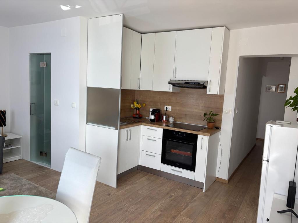 Studiový apartmán je plně a moderně vybavený v prvním patře rodinného domu, který je 30 m od moře a krásné oblázkové pláže s pozvolným vstupem do moře. Před domem je parkování pro auto a na dvoře je altán s grilem a stoly pro posezení ve stínu. V blízkosti se nacházejí obchody, restaurace, cukrárna a u vjezdu do města se nachází nákupní centrum Plodine.