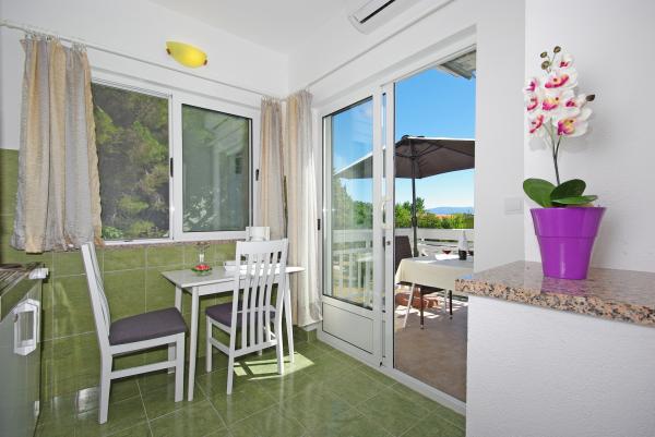 Byli jsme naprosto spokojeni. Hostitelé jsou velmi milí, ochotní a postarali se o to, abychom se cítili jako doma. Apartmány jsou čisté, prostorné a útulné, vybavení naprosto dostačující. Největším plusem je nádherný výhled na moře, který nás bavil každý den. Lokalita je skvělá – vše je snadno dostupné, přitom je tu ale klid a pohoda na odpočinek. Skvělé místo pro dovolenou, určitě se rádi vrátíme!