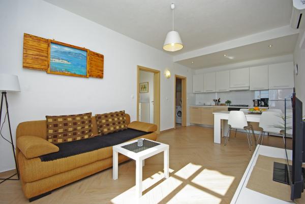 Apartmány v strandhaus-dalmatien se nacházejí ve skvělé lokalitě, jen 5 metrů od moře a pláže. Kompletně a moderně vybavené v první řadě k moři a v klidném prostředí. Všechny apartmány mají krásný výhled na moře a poblíž jsou 3 restaurace. Více obrázků můžete vidět na naší osobní stránce. Zadejte google: strandhaus-dalmatien a najdete naše osobní webové stránky. Zařízení se nachází 5 minut chůze do centra. Hlídané parkoviště. Těšíme se na váš dotaz!