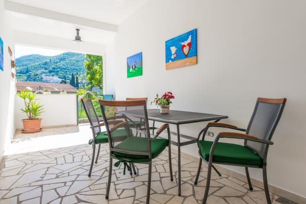 Byt má svůj vlastní vchod a terasu se stolem a židlemi k relaxaci. V apartmánu je možné ubytovat až 4 osoby, má dvě ložnice, plně vybavenou kuchyň a jídelnu a koupelnu. V ceně je zahrnuto použití klimatizace, Wi-Fi připojení na internet, TV, parkovací místo (což je přímo před domem), pračkou a myčkou na nádobí. Hosté se mohou také v ceně, papírové ručníky, toaletní papír, prací prostředky pro pračky a myčky, sprchový gel, tekuté mýdlo, ručníky, ložní prádlo a pobytová taxa. Byt se nachází v krásné přímořské vesničky Zaton pouhých 8 km od Dubrovníku. Vzdálenost od pláže a na dalších místech ke koupání, a na autobusové nádraží a obchody se nachází 5 minut chůze od hotelu. Loch se skládá z Mali a Veliki Zaton která sahá nábřežní promenádu. Pokud chcete klidnou dovolenou a zároveň okolí Dubrovníku a jeho okolí Náš byt je vaše volba.