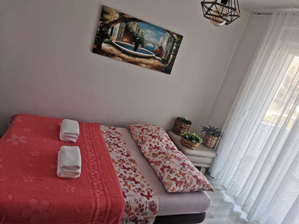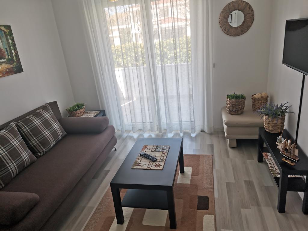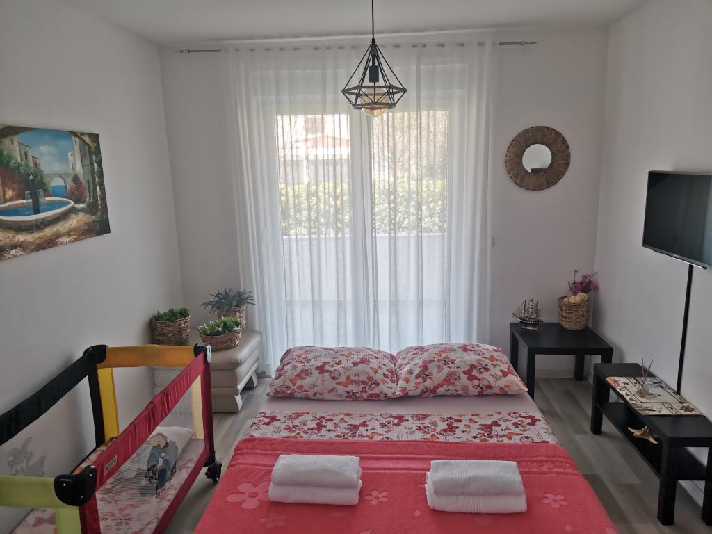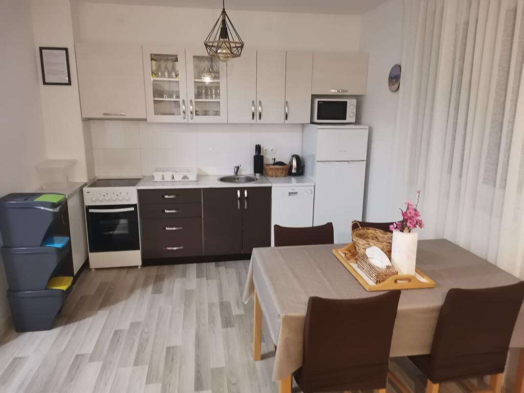 V první řadě nás majitel velmi mile přivítal, je více než zdvořilý! Děti se dočkaly překvapivých dárků, v lednici jsme poprvé po cestě měli džusy, vodu, pivo a mléko. Byla připravena miska plná ovoce, kávovar a kapsle, láhev vína, 2 sklenice Nutelly, cereálie, koření a olej na vaření, fritéza a v podstatě plně vybavená kuchyň se vším potřebným. Na televizi máte k dispozici WiFi a Netflix. Za používání klimatizace se neplatí zvlášť jako u některých jiných zařízení. Apartmán je nový, pěkně zařízený, za ním je malá zahrada na hraní a místo k posezení a grilování, pokud chcete, a také vlastní parkovací místo. Apartmán se nachází asi 15 minut chůze od pláže, což je skvělé pro děti, protože písek je jemný a moře je mělké, takže mohou být samostatné bez ohledu na věk, nebo asi 2 minuty autem, pokud se rozhodnete jet na pláž v Zatonu jako my. Zkrátka všechna doporučení, určitě se příští rok vrátíme.