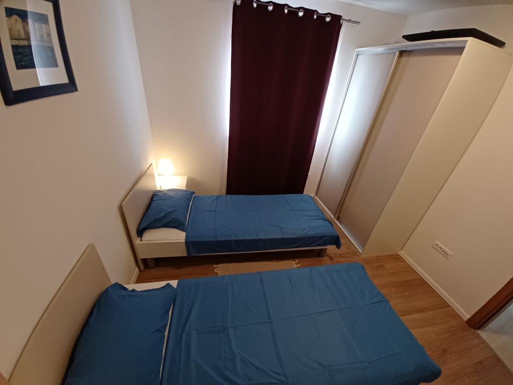 Nový, moderní byt v blízkosti moře. Má dvě ložnice, obývací pokoj s kuchyní, koupelnu, balkon. Parkování ve dvoře.