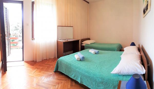 Dům Irena je apartmán pro deset osob - v prvním patře domu jsou pokoje (dvě třílůžkové pokoje s balkonem, dva dvoulůžkové pokoje a dvě koupelny), na chodbě je klimatizace (v prvním patře). V přízemí je kuchyně, terasa a gril (majitelé domu jsou v přízemí - společná chodba). Dům se nachází přímo u pobřeží, 10 metrů od písečné pláže, má venkovní sprchu, dostatek parkovacích míst, Wi-Fi a TV (SAT).