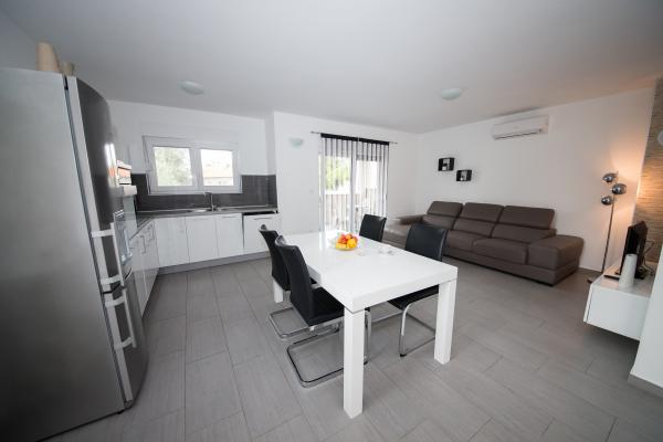 Pobytová taxa je v ceně.Apartmány jsou moderně zařízené, dobře vybavené, uklizené a čisté. Vše, co potřebujete, má byt! Terasa, krásné grilování .. Dům ideální pro dvě rodiny! Pláž 10 minut chůze, písečné, mělké moře. Skvělé pro děti i neplavce! Na pláži je kavárna (a zmrzlina), také slunečníky a lehátka lze pronajmout! Obchod vedle domu, pekárna a dvě restaurace poblíž. Maja je milá, ochotná a zodpovědná majitelka! Komunikace výborná