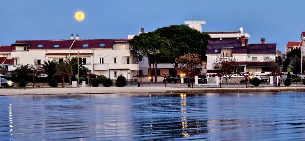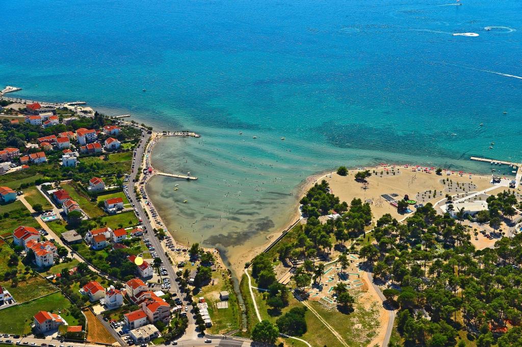 Bezprostřední okolí: - Turistický areál \\Zaton\\ - 60 m - Dětské hřiště - 20 m - Caffe bar - 20 m - Restaurace s polopenzí - 30 m - Pekárna - 40 m - Kiosky s plážovým vybavením - 40 m - Venkovní posilovna - 40 m - Zadar - 12 km - Nin - 1 km Na pláži jsou sprchy, převlékárny a sociální zařízení. Na pláži si lze pronajmout lehátka, slunečníky, šlapadla a další vybavení. V okruhu 100 km se nachází národní parky: Paklenica, Kornati, Plitvická jezera, Krka a Severní Velebit.