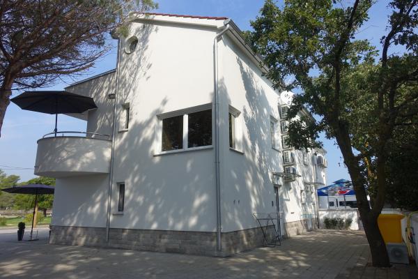 Novostavba v bezprostřední blízkosti pláže. Všechny apartmány mají výhled na moře. Vyznačená parkovací místa. Budova je obklopena duby, borovicemi a středomořskou vegetací.