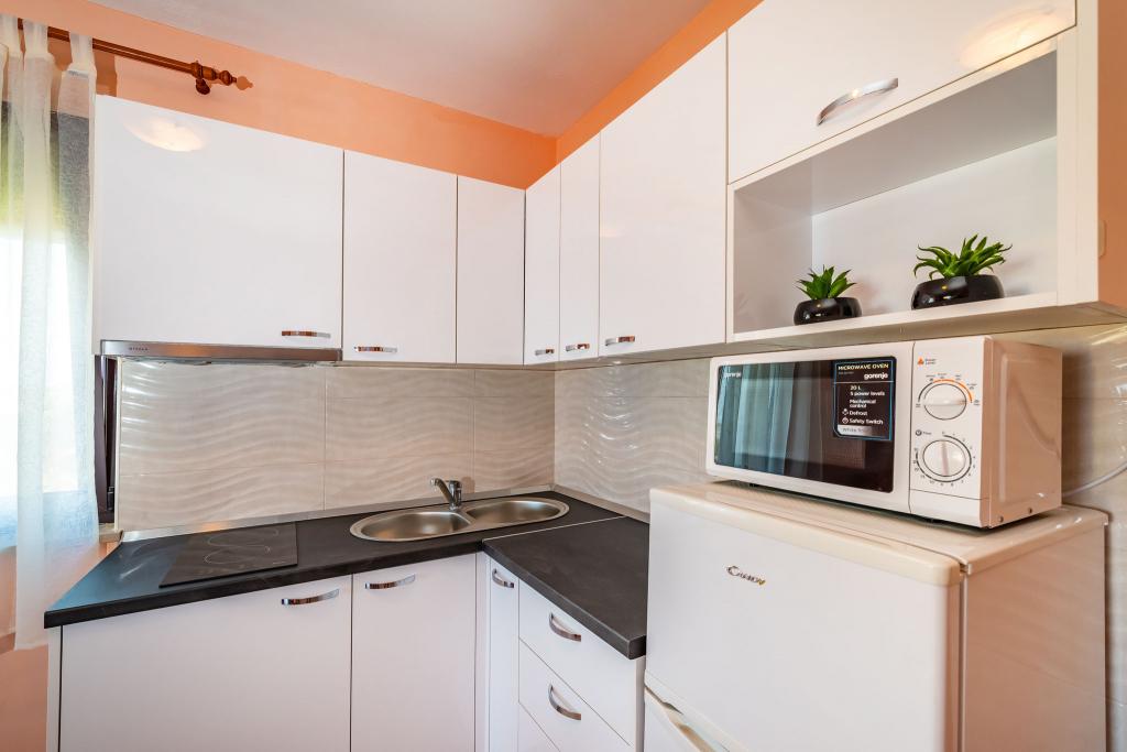 Pobytová taxa je v ceně. Doklad o potvrzení rezervace při rezervaciGarsonka, příjemný k pobytu. Plně vybavený, uklizený a čistý. Krásná terasa s výhledem na moře. Parkování pro auta ve stínu po celý den. Hostitelka je extrémně komunikativní, zdvořilá a nesmírně milá a profesionální. Dvůr a prostředí jsou extrémně upravené. Naprostá chvála a doporučení všem. Vrátíme se znovu!