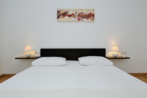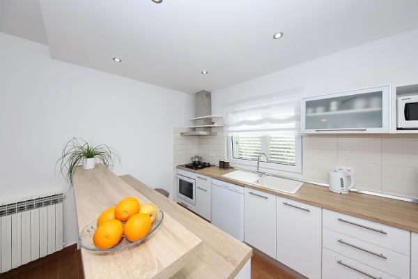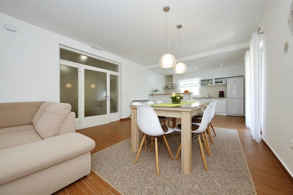 Tento moderně zařízený dům v centru města, 500 metrů od moře. 4-pokojový, měřící 140 m 2: obývací pokoj / jídelna 40 m2, TV a rádio. TV (plochá obrazovka), klimatizace. Vstup na terasu. 2x pokoj, v kazdem pokoji, 1x francouzské lůžko (160 cm, v délce 200 cm). 1x pokoj, 1x francouzské lůžko (180 cm, v délce 200 cm), 1x skládací lůžko. Otevřená kuchyně (4 plotýnky, trouba, myčka, mikrovlnná trouba, lednice). Koupelna / WC, sprcha / WC, WC zvlášť. Terasa 20 m 2 (kryté). Pouliční nábytek. K dispozici: sejf, dětských. dětská postýlka. Internet (zdarma).