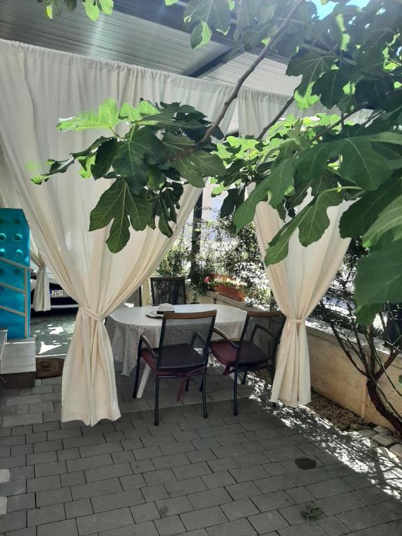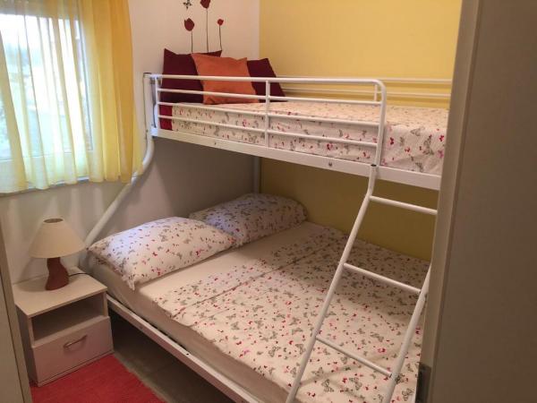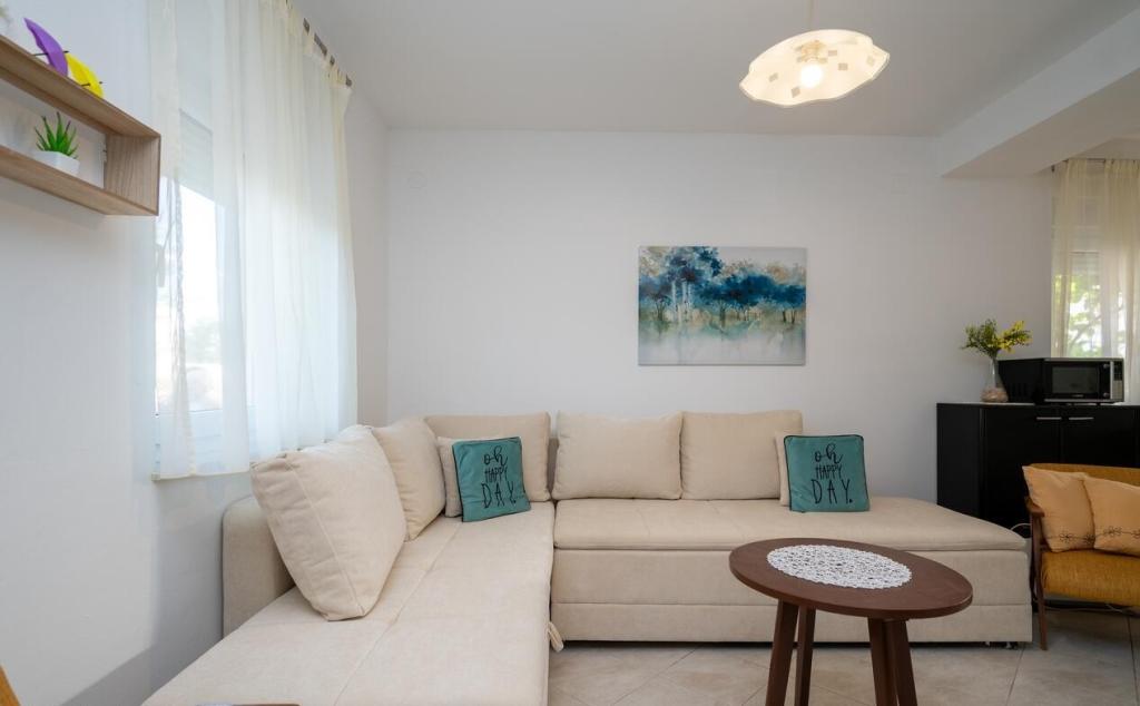 Sanja a její rodina je opravdu velmi příjemný a ochotný. Byt i terasa jsou krásné. Měli jsme skvělý přivítání a teplý velmi rozloučení. Nyní již podruhé sem a bude vracet častěji. K dispozici je plážový (kameny), v těsné blízkosti a druhý pláž (s pískem a malými oblázky, malý (hřiště a pláž) asi 2 minuty. Autem. To je ideální pro malé děti (Moře je velmi mělké). Existuje také několik slunečníky a lehátka a dostatek parkovacích míst. je o něco dál stále pláž, kde si můžete koupit různé upomínkové předměty a plavky. K dispozici je také pláž kavárna, dětské hřiště a malá pekárna. Měli jsme nádhernou dovolenou zde a určitě vrátí.