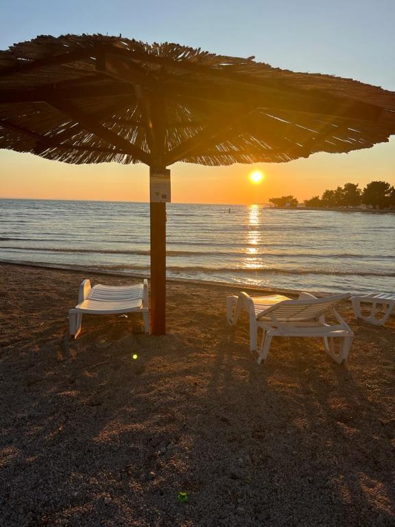 Vitas Apartments se nachází u městské pláže Jaz, která se táhne podél celé promenády v Zatonu. Jsou vybaveny novým a moderním nábytkem. Zaton je tím pravým místem pro nezapomenutelnou rodinnou dovolenou. Pláže pro nejmenší s malými zátokami, mělčinami a nekonečnými hrami v písku. A pro starší hlubší části pláže místo na opalování nebo čtení dobré knihy ve stínu deštníku. Pláž v Zatonu má modrou vlajku, která je oceněním za čistotu a průzračnost moře. Na pláži jsou slunečníky a lehátka, sprchy, u pláže samotné je několik kaváren, restaurací a dětský park. Tento apartmán s výhledem na moře a do zahrady nabízí hostům bezplatné Wi-Fi. Byt obsahuje rodinné pokoje. Všechny apartmány v tomto apartmánovém komplexu mají klimatizaci, posezení, kabelovou TV s plochou obrazovkou, kuchyň, jídelní kout a vlastní koupelnu s fénem, sprchou a toaletními potřebami zdarma. K dispozici je také myčka nádobí, trouba a mikrovlnná trouba.