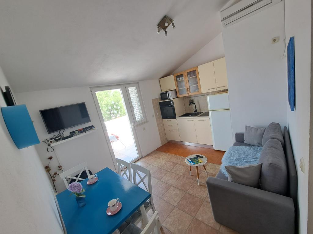 Úhledný a prostorný byt, terasa má výhled na moře, dvůr je velký a plný zeleně. Obchod je přímo u domu, stejně jako pláž, která je minutu chůze, pláž je oblázková, má přírodní stín, lavičky k sezení, houpačky pro děti... Majitelé jsou úžasní lidé! Moje rodina a já doporučujeme apartmány Moreta všem, kteří chtějí odpočívat, relaxovat a užívat si moře!
