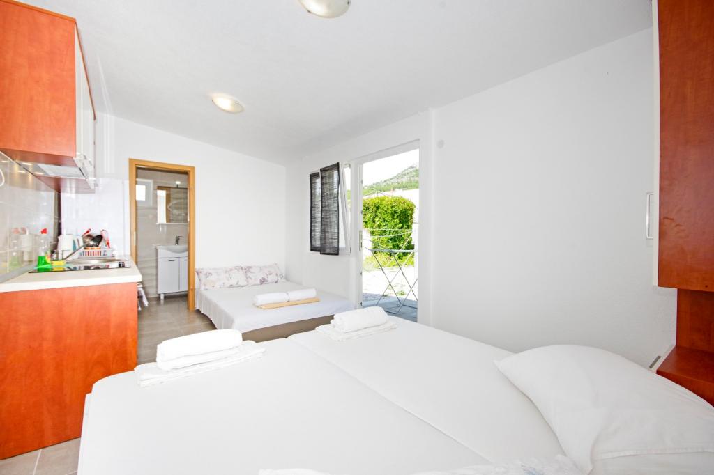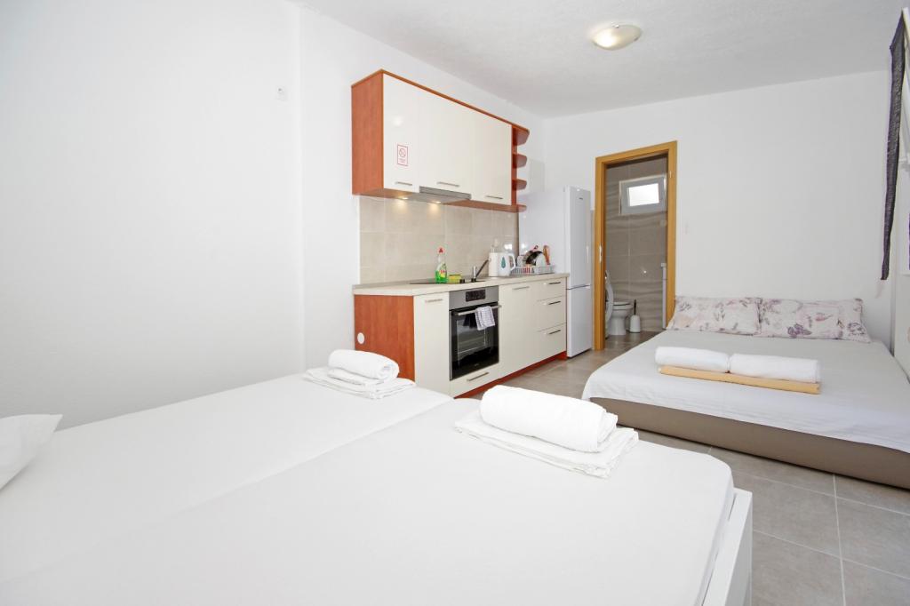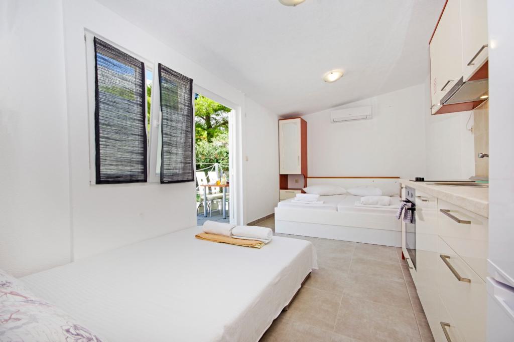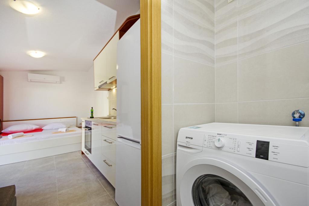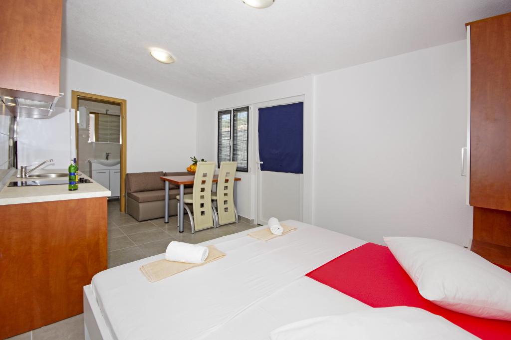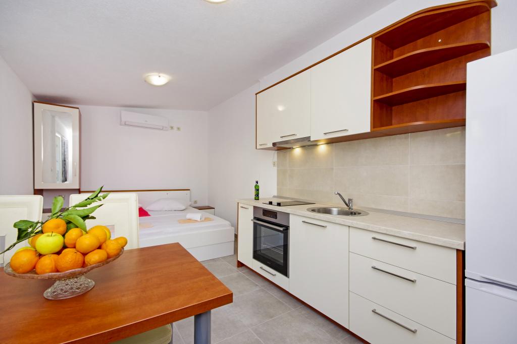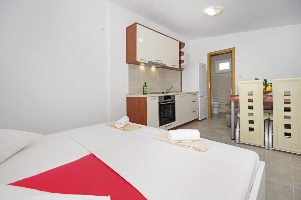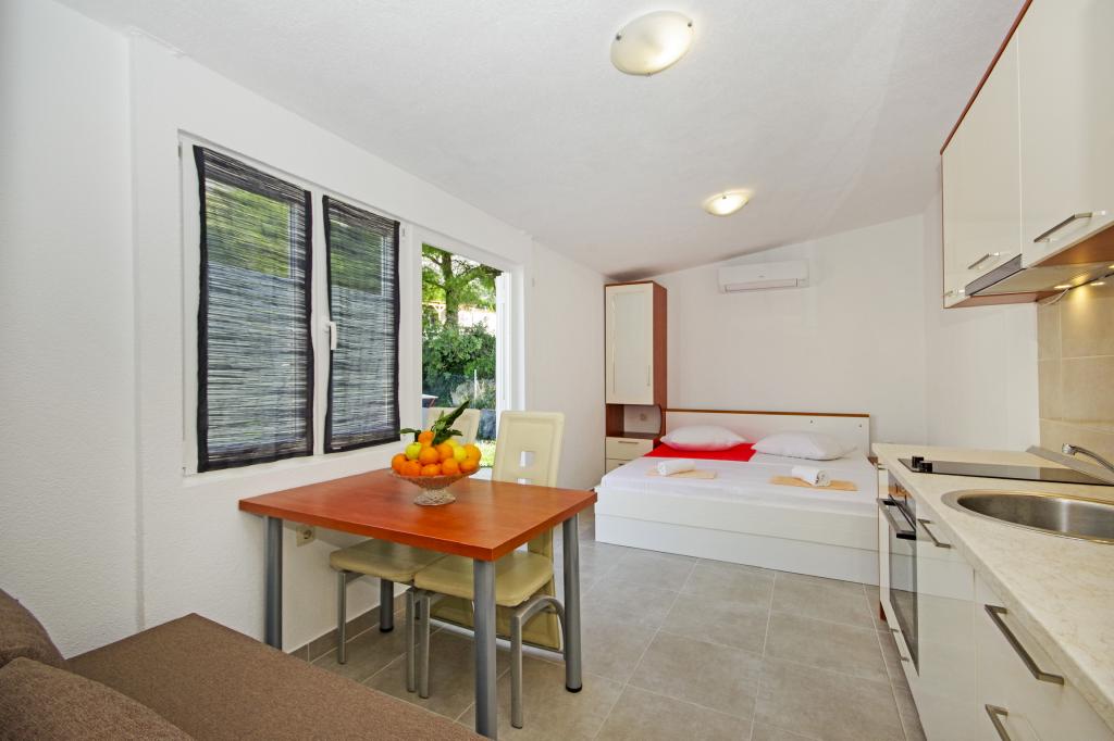 Studio apartmán k pronájmu 4 osoby 24 metrů čtverečních (prefabrikovaný nízkoenergetický dům) v Živogošće-Blato MAKARSKA RIVIERA na pláži 10 metrů od moře studio je nově vyzdobeno velkou kuchyní velká manželská postel má také možnost rozkládací pohovky, takže je vhodný pro více jedna mladší osoba do 15 let nebo dvě méně do 12 let. Studio se pronajímá od 1. 6-30. 9. Živogošće-Blato je krásné malé místo s velkými písečnými plážemi a borovicovým stínem, ideální pro rodinnou turistiku pro rodiny s malými dětmi, místo má bohatý turistický obsah Marina-Lučica pro kotviště menších člunů a na místě si lze pronajmout čluny a kánoe stejné motorové čluny a kánoe, organizují se výlety na ostrovy Hvar, Korčula dřevěnou turistickou lodí atd. Do 70 metrů od Studio Apartment jsou 4 restaurace, 3 kavárny a obchod s potravinami