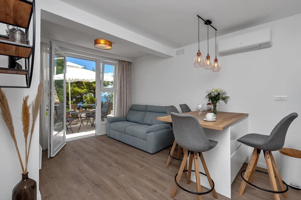 Pronajmu byt ideální pro dva nebo dva + dvě malé děti.Minimálně 7 nocí.Na malém klidném místě, Živogošće Porat 🏖️ Wifi zdarma, gril, terasa, parkování, 20m od moře a bohužel bez domácích mazlíčků, poblíž máte kavárny, restaurace, obchody se suvenýry, dětská hřiště, pekárny, obchody, půjčovny lodí a motorů, lehátek, šlapadel a supů a bohužel bez domácích mazlíčků