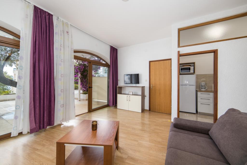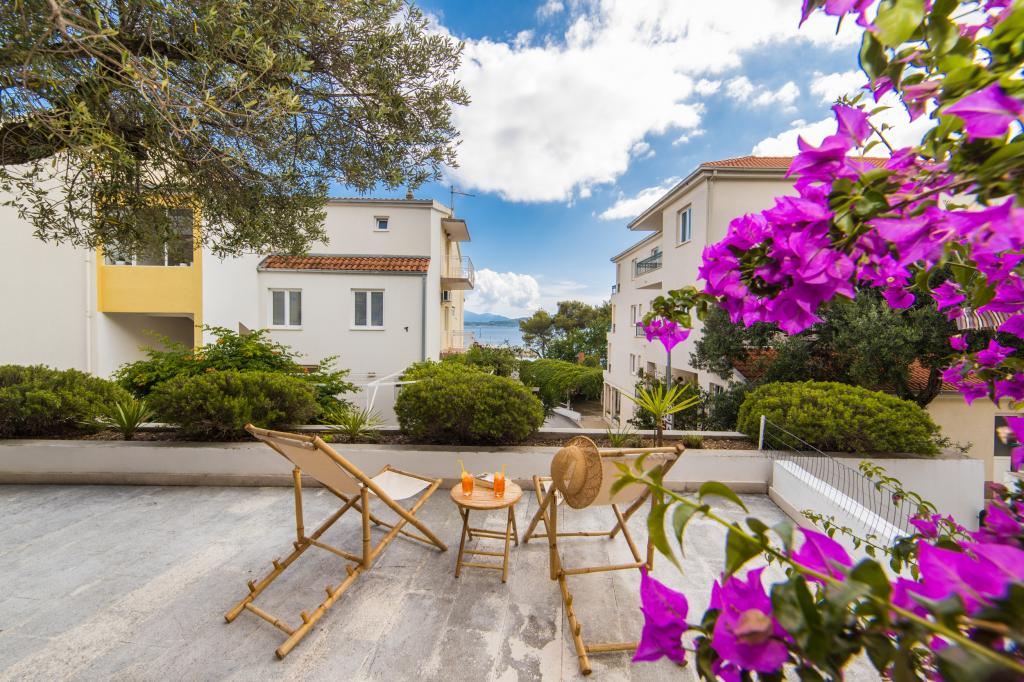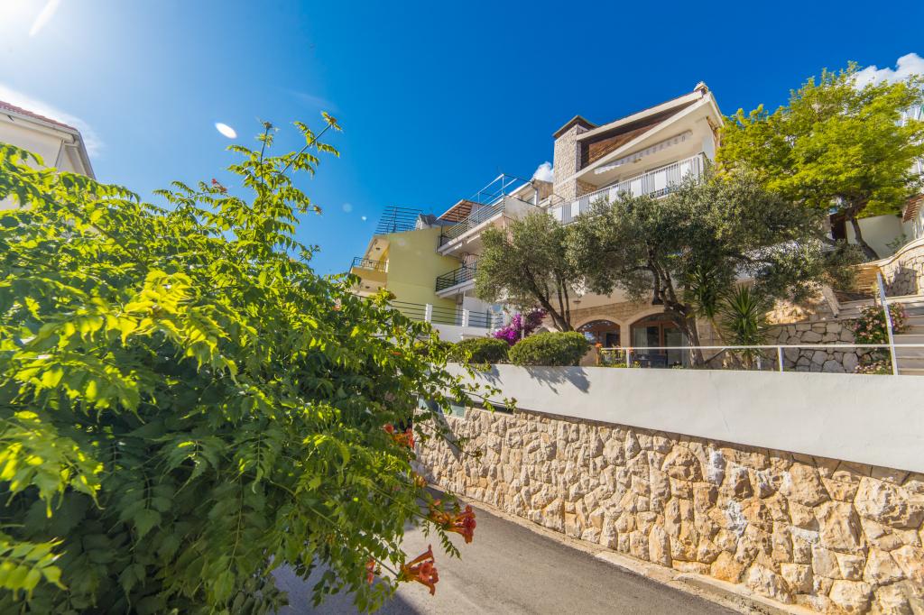 Luxusní apartmány s výhledem na moře je 50 mtara udljeni od pláže. V těsné blízkosti hotelu můžete vychutnat klidné restoranuma a kaváren. Ideální pro ty, kteří chtějí odpočívat v pokoji, dleko z davu.