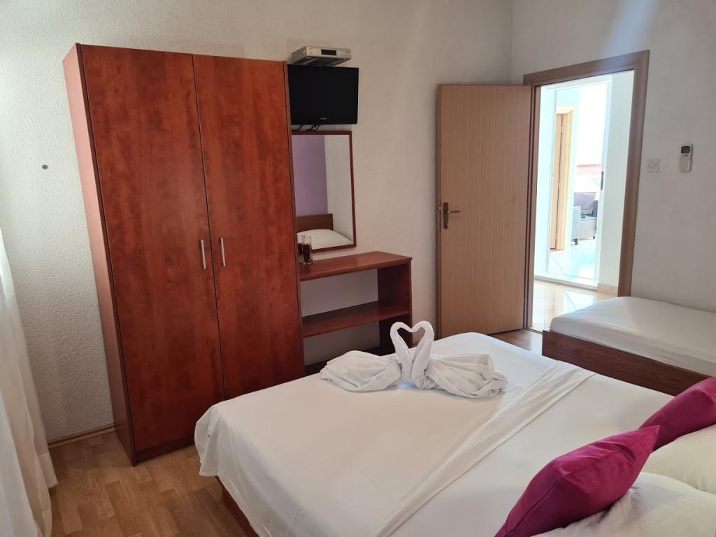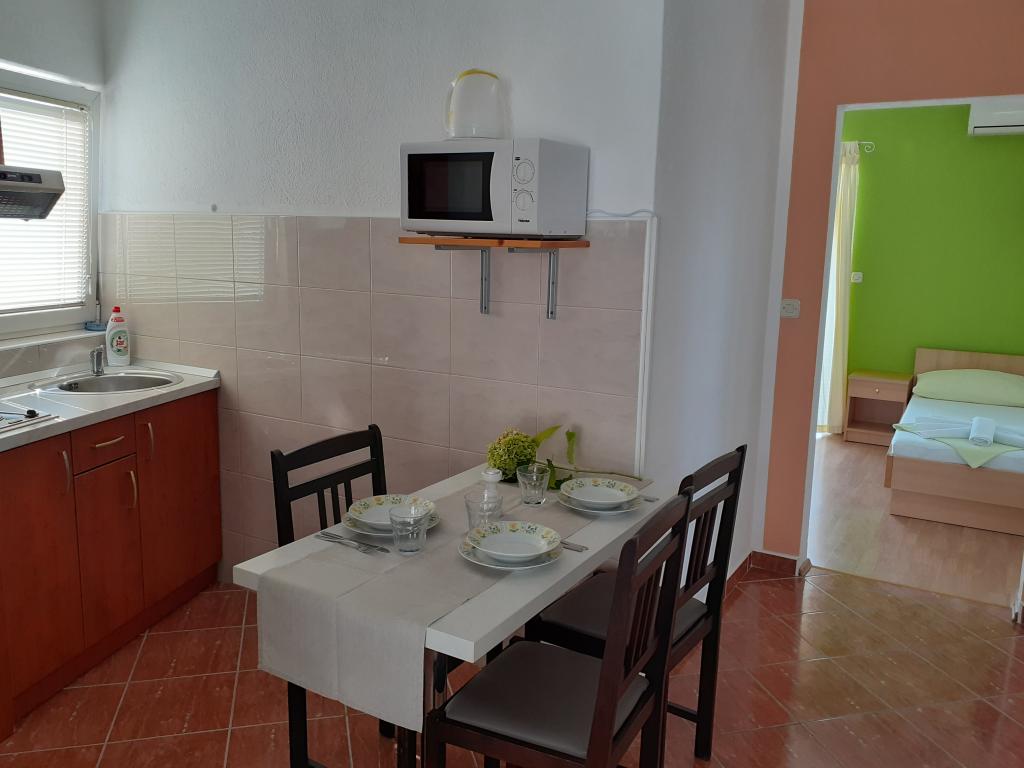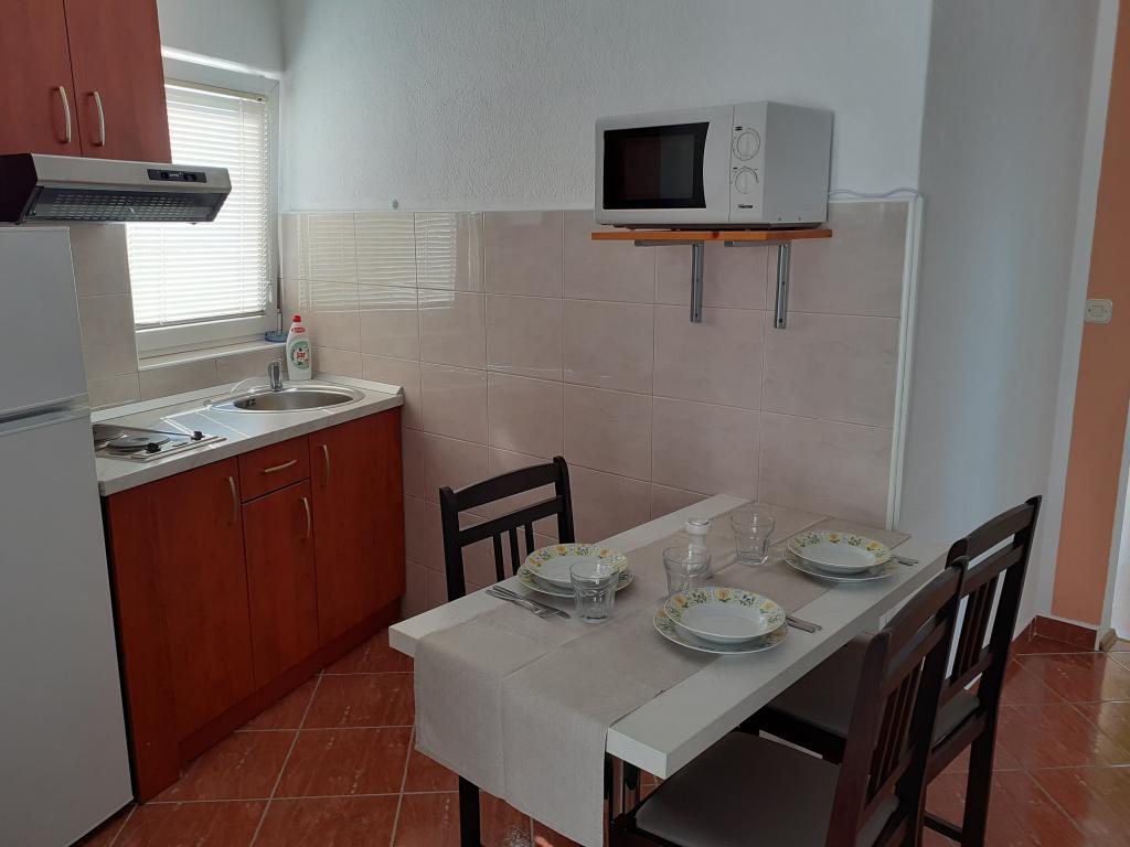 Strávili jsme zde krásných 10 dní dovolené. Apartmán velmi čistý, nic nechybělo, 3x za 10 dní čisté ručníky a osušky. Měli jsme apartman pro 2 osoby, ale vešli jsme se i s 3 letým dítětem. Hodná paní domácí nám i připravila postýlku, což jsme využili. Apartman je malý mezonet, dole spaní a koupelna..nahoře terasa a kuchyň. Naprosto ideální a dostačující. Cena velmi přijatelná. Měli jsme zde klid. Velice doporučuji. Děkujeme za krásnou a klidnou dovolenou, Ondřej Marta a Linda