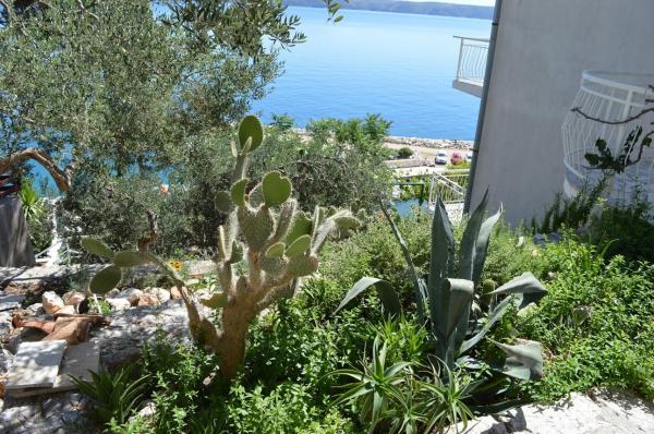 Moderně vybavené turistické apartmány s krásným výhledem na moře, obklopené různými středomořskými rostlinami, 50 metrů nad mořem, 3 minuty chůze od moře a 5 minut od pláže.