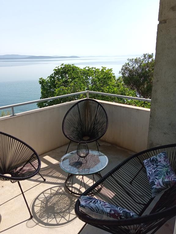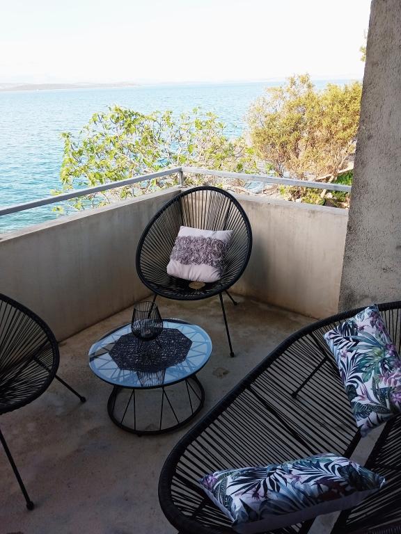 Byt se nachází přímo u moře, na pláži. Z terasy je nádherný výhled na záliv. V bytě je plně vybavena (nádobí, ručníky, ložní prádlo ...) To má dvě ložnice, dvě koupelny, obývací pokoj a kuchyň. Hosté mají k dispozici parkovací místo v garáži, ale když mohou být použity i grilování.