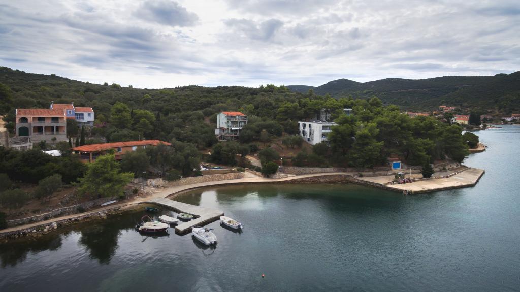 Byt se nachází v první řadě k moři, tedy v bezprostřední blízkosti pláže (cca 50 metrů). Pláž je kombinací písku (vhodné pro seniory a děti) a betonu (vhodné pro dospělé). V bezprostřední blízkosti ubytování je kavárna a do obchodu se dostanete za 5 minut klidnou procházkou podél moře. Prodejna je otevřena od 8:00 do 12:00 a od 17:30 do 20:00, o státních svátcích je zavřeno. K ubytování se lze dostat po silnici podél moře nebo po neasfaltované cestě, tzv. bílá cesta, makadam. Obchod Tommy (potraviny, potřeby pro domácnost), lékárna, bankomaty (bankomat, ERSTE, PRIVREDNA BANKA) a pošta se nachází v Sali, které je vzdálené cca 9 km. Trajektový přístav je vzdálen cca 20 km a nachází se v Brbinji. V Luka jsou tři restaurace, kde se můžete najíst. Bankomaty se nacházejí v následujících lokalitách: Zaglav, Sali a Brbinj.