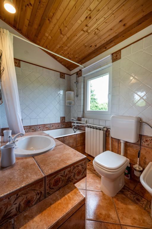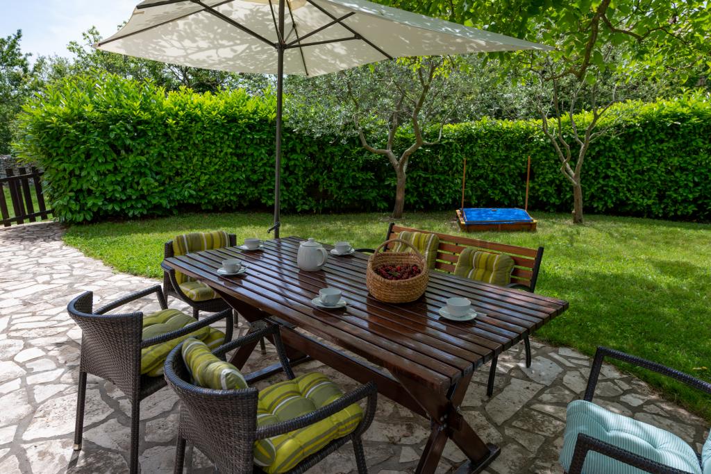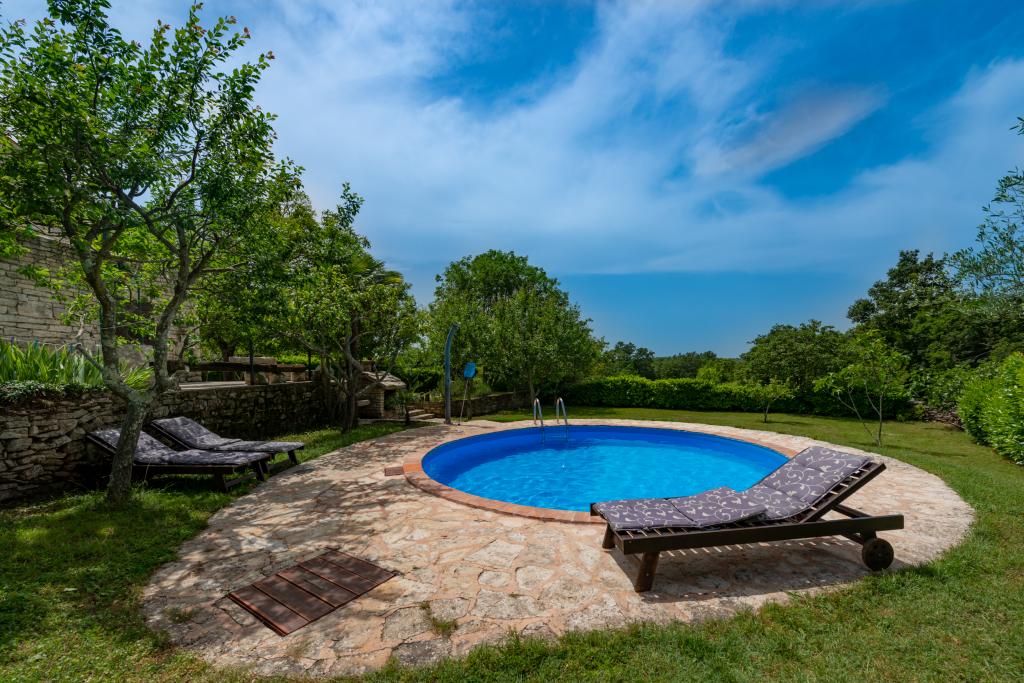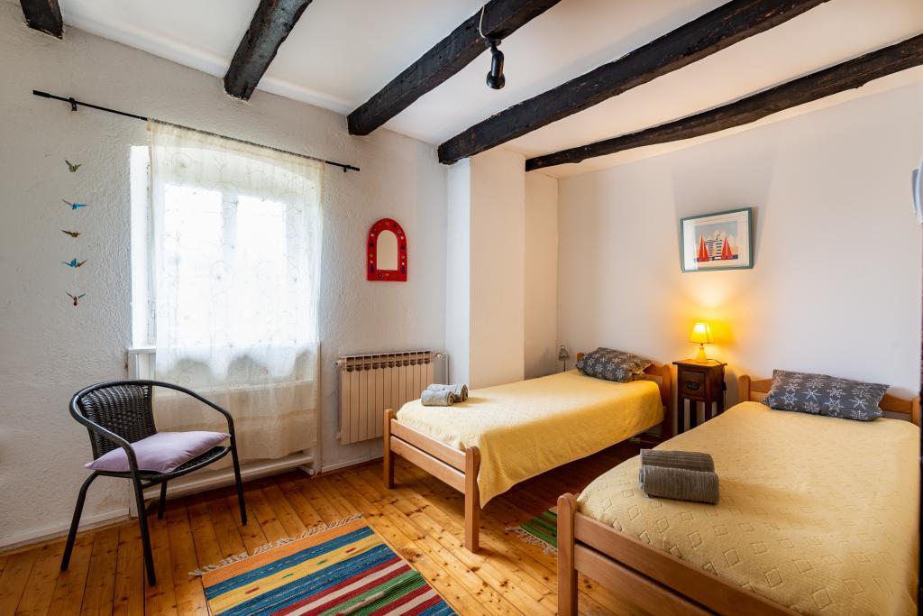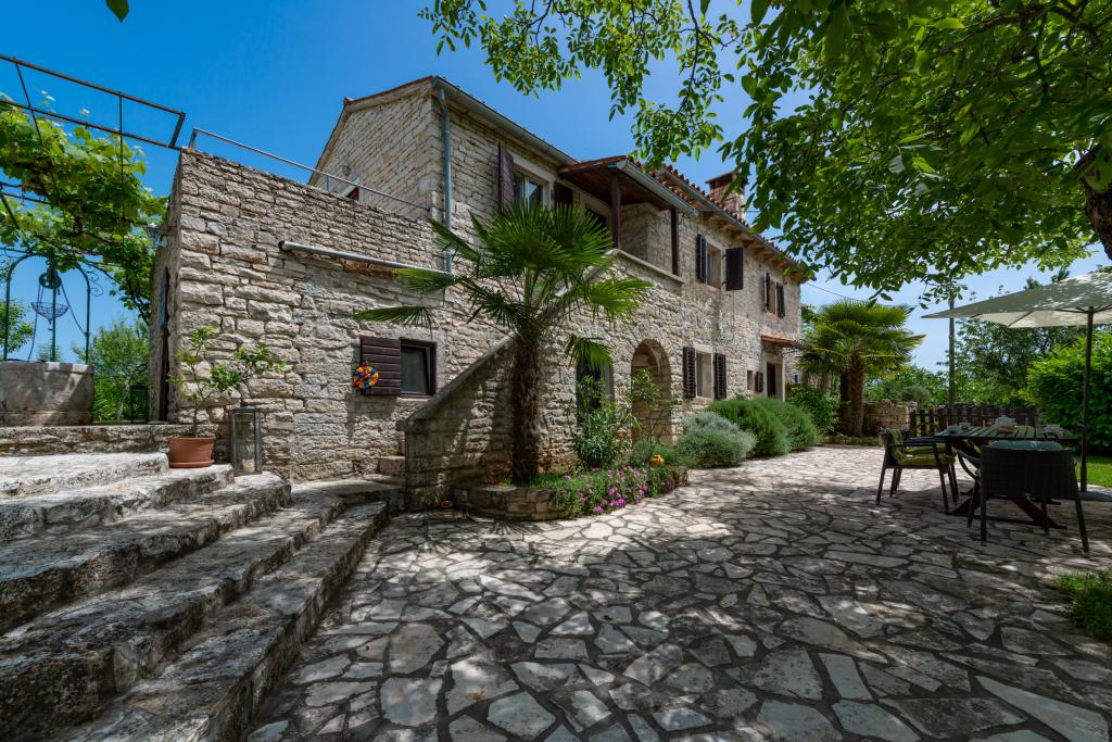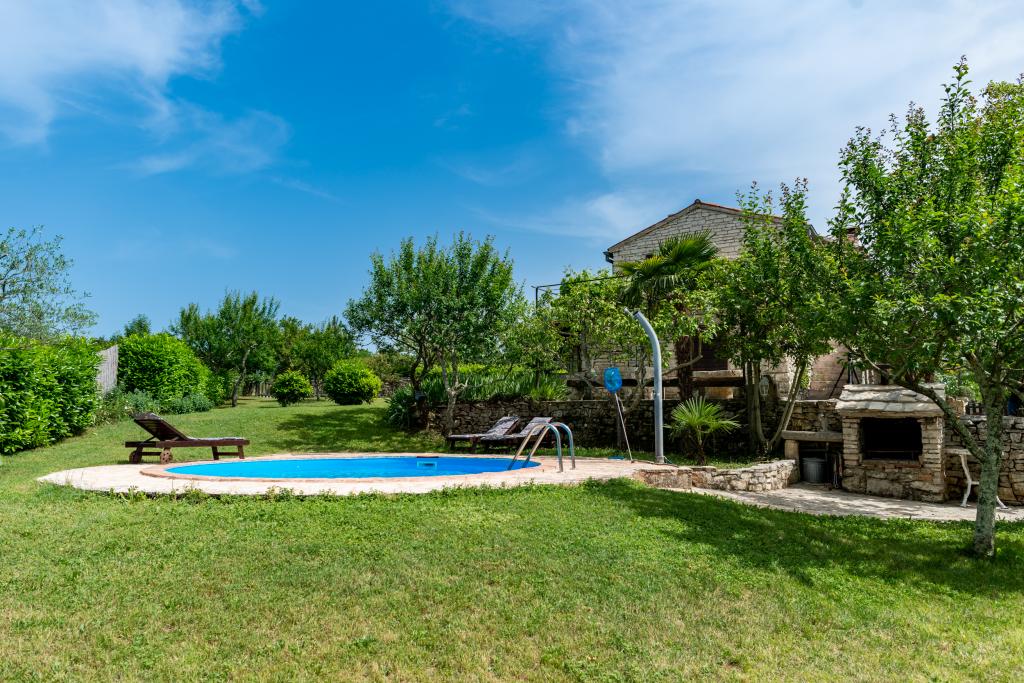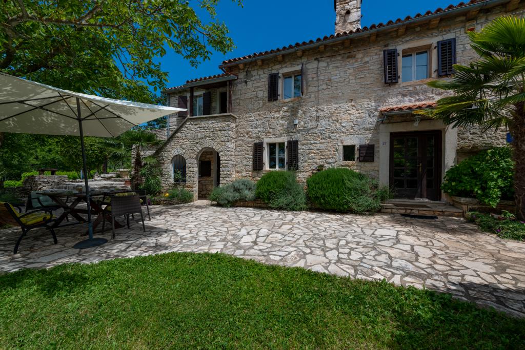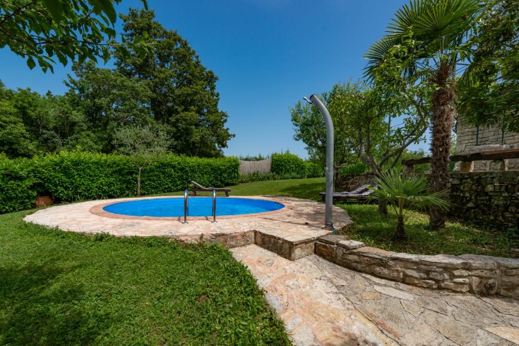 Starý, rustikálně vyzdobený kamenný dům v istrijském stylu z roku 1850, renovovaný, obklopený loukami, poli a lesy. Izolované, klidné a slunné místo v zelené. Obchod 3 km, restaurace 3 km. Žminj, 4km, Bele (pláž) 18km, Rovinj (moře, pláže, sportovní zařízení) 20km. Soukromý, oplocený pozemek o rozloze 1600 m2 s loukami a stromy. Venkovní sprcha, zahradní nábytek. Kruhový bazén (průměr 5 m, hloubka 120 cm. Venkovní gril. Internet k dispozici WIfi, dětská postýlka, podavač, myčka nádobí. Parkování u domu na pozemku. Pračka - extra 10Eur / den Přízemí / obývací pokoj / jídelna s otevřeným krbem, satelitní / TV, DVD a stereo přehrávač, kuchyň (sporák, trouba, myčka). Sprcha / WC. Vnitřní schodiště v prvním patře: 1. pokoj se dvěma samostatnými lůžky, druhý pokoj s manželskou postelí a třetí pokoj s francouzskou postelí a východem na terasu a samostatný východ do zahrady.