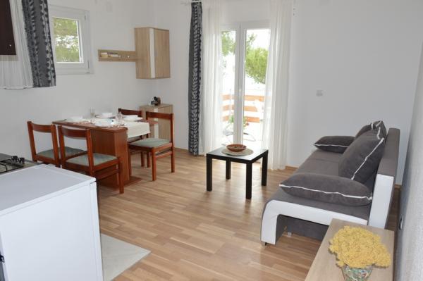 Snažně Apartmány se nacházejí v Sutmiholjska na jižní straně ostrova a je ideální volbou, pokud chcete dostat pryč od městské vřavy a hektického života a užít si krásné přírody. Každý apartmán má ložnici s manželskou postelí (pro dvě osoby), obývací pokoj s pohovkou, která sahá do postele pro dvě osoby, kuchyně s plynovým sporákem, koupelna se sprchovým koutem a terasa s výhledem na moře. V ložnici, pokud je to nutné, lze přidat dětskou postýlku nebo dětskou postýlku. Cena se vyjadřuje v jednom bytě. Elektřina a ohřev vody zajišťuje solárních panelů a je to nezbytný racionální spotřebě. Zákaz používání tepelných spotřebičů (elektrický sporák, vysoušeč vlasů, žehlička). Moderní technologie (Wi-Fi, klimatizace, TV) nejsou k dispozici. V blízkosti (4 km) je centrální poloha na ostrově, Babino Polje, kde je obchod a výborná restaurace s místními specialitami. K dispozici je také lékárna, pošta a kostel sv. Hostitelé mají hosté neustále k dispozici.