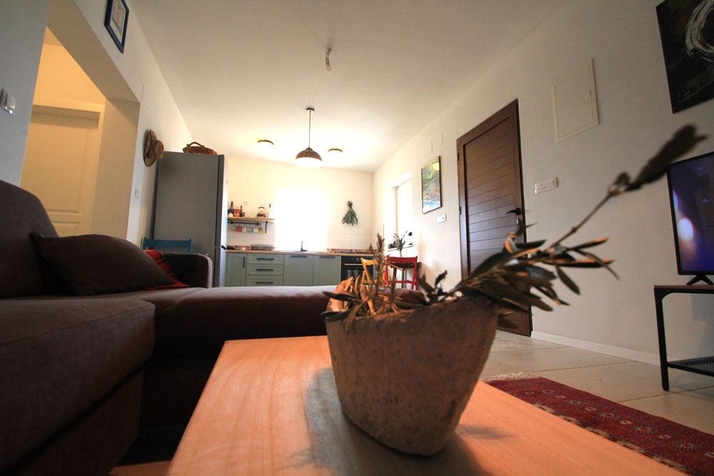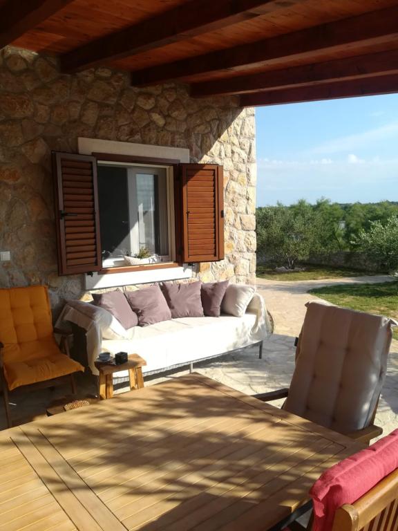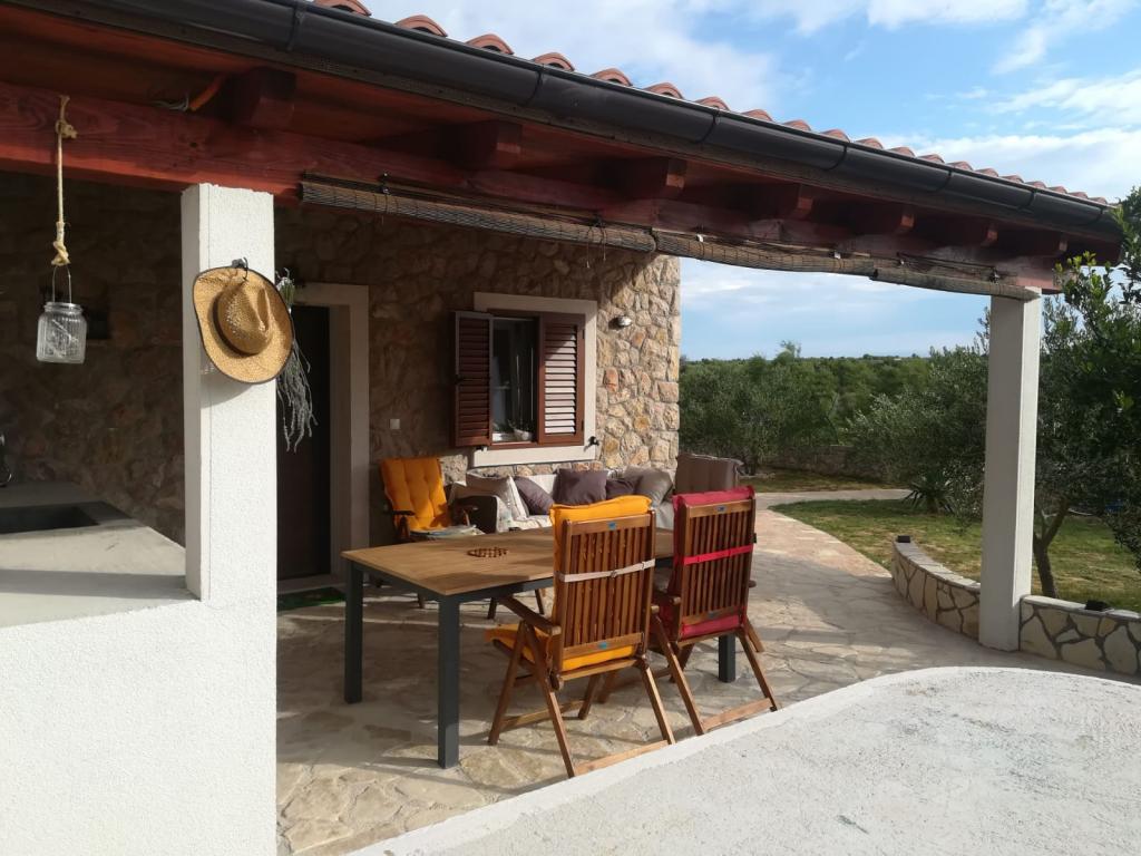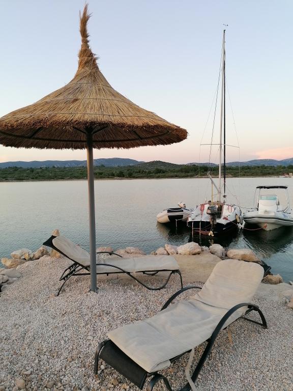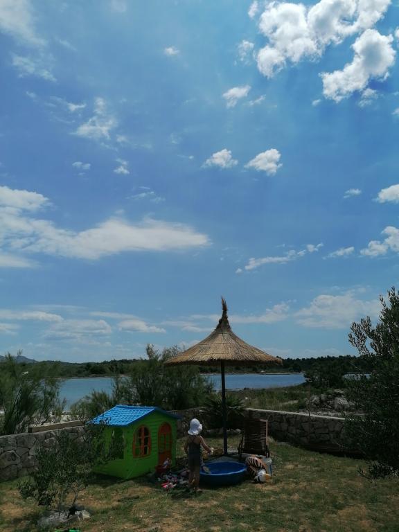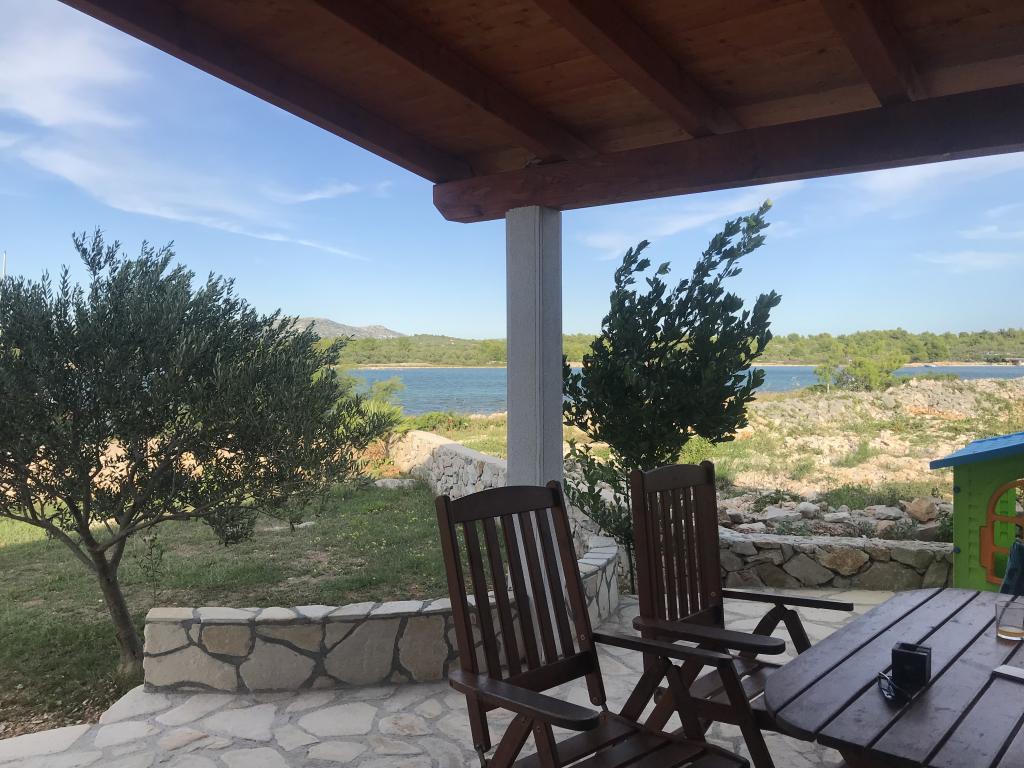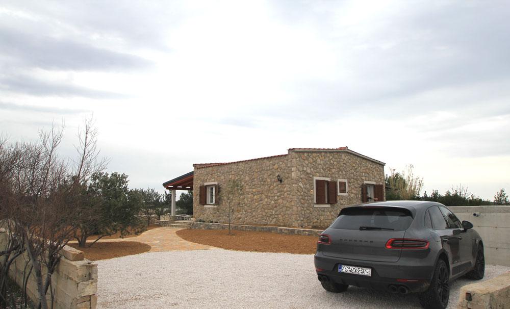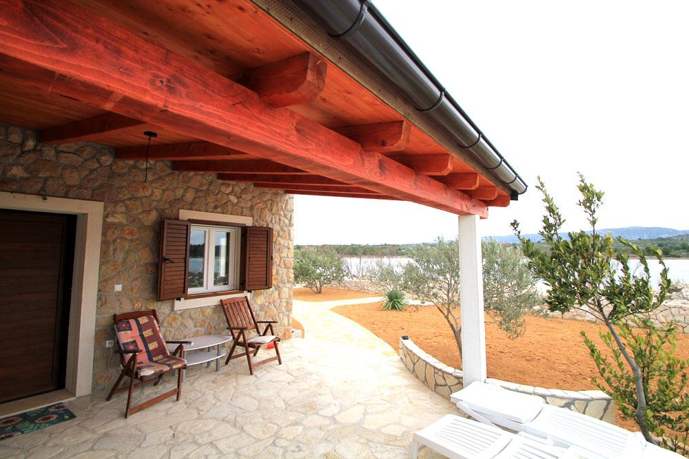 Nový kamenný dům s dvorem v klidné zátoce. Je vybaven pro příjemný pobyt a dovolenou rodin s dětmi a domácími mazlíčky. Má dvě ložnice, obývací pokoj, kuchyň s jídelním koutem, koupelnu a velkou krytou terasu s venkovní kuchyní. Každý pokoj má manželskou postel o rozměrech 200x160 cm. V obývacím pokoji je rohová postel o rozměrech 200x150 cm. Před domem je pláž a kotviště pro menší lodě. . Pro děti jsou připraveny hračky. Příjezd k domu je po makadamové silnici 1, 5 km. Moře, přírodní park Vranské jezero a národní park Kornati nabízejí možnost plachtění, surfování, výletů, jízdy na kole. Ideální místo pro všechny milovníky přírody, klidu, svobody a všeho, co souvisí s mořem, kteří chtějí strávit kvalitní, zajímavou a aktivní dovolenou.