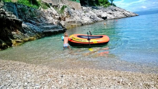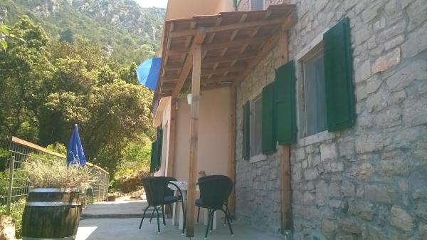 Plně vybavené dva apartmány, které se nacházejí v klidné zátoce, vyvracet ostrov. V areálu se nachází 30 m od pláže a 10 km od centra města. V prvním bytě jsou dvě ložnice, koupelna, kuchyň a jídelna, a dvůr s grilem, jakož i venkovní posezení a vnější sprchou. Ve druhém bytě jsou dvě ložnice, koupelna, kuchyň a jídelna, balkon, gril a venkovní sprcha. Elektřina se vyrábí solární panely a můžete nabíjet mobilní telefony, notebooky a poslouchat rádio, a to je zdrojem osvětlení. Lednicí a sporákem se plyn. Voda je dešťová voda, a je vhodné uložit. Cena za jeden a druhý byt je stejný. Poslední 3 km do nemovitosti je dobrá štěrková cesta.