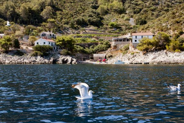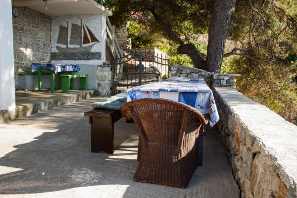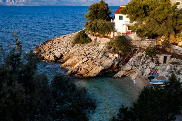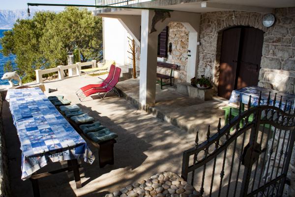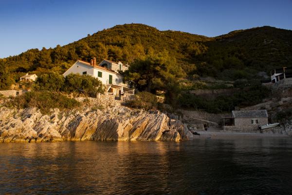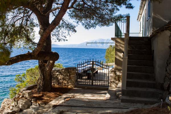 Prázdninové ubytování ve stylu Robinson Crusoe, se nachází v klidné zátoce na severním Pakomina straně ostrova a patří do obce Gdinj. Dům se nachází přímo nad čisté oblázkové pláže, ve výšce 10 m udljenosti, a máte vlastní nábřeží na koupání. Pohled z terasy, která má přirozený odstín obrovské borovice je krásná, uvidíte moře a pláže a pobřežní ostrov Brač a horského svahu. V zátoce se nachází jen tři domy, ve jednij z nich je rodinná restaurace, která nabízí velký výběr ryb a místních specialit a můžete dostat ochutnat jídla nebo polopenzi. K ubytování nabízíme kompletní dům o dvou patrech. V přízemí je velká terasa s grilem, sklep, kuchyňská linka s plynovým sporákem, dvě ledničky (jeden elektrický a druhý plyn) a obývacího pokoje (s lůžkem) a koupelna. V patře jsou tři ložnice se sedmi lůžky a koupelnou a vstupem na terasu. Z velkých měst na ostrově centru jsou hodinu jízdy autem. Nabízíme připojení k internetu, jsou zahrnuty v ceně a TV (místní kanály). Parkovací místo je zajištěno, stejně jako vyvazování.